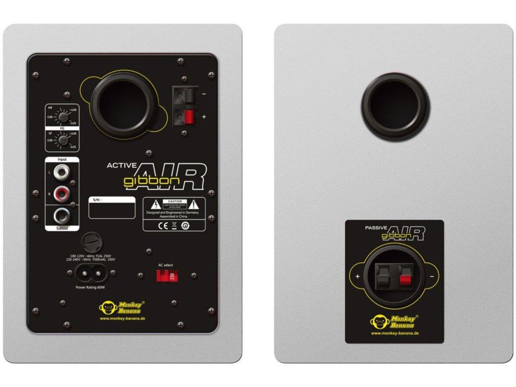 Gibbon AIR, podobnie jak inne monitory odsłuchowe Monkey Banana, zostały zaprojektowane i przetestowane przez doświadczonych inżynierów audio w Niemczech. Celem było osiągnięcie jak najlepszych parametrów i spełnienie wymagań stawianych monitoringowi studyjnemu. Z naciskiem na absolutnie czysty, precyzyjny i przejrzysty dźwięk bez jakiegokolwiek dodatkowego zabarwienia muzycznego.