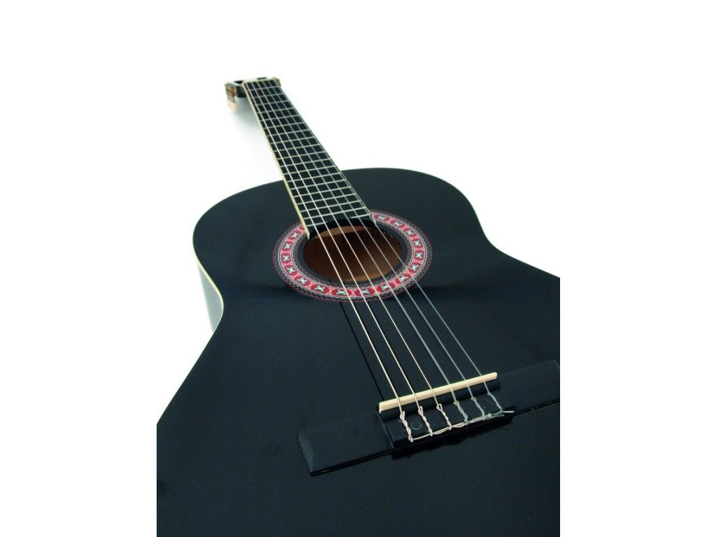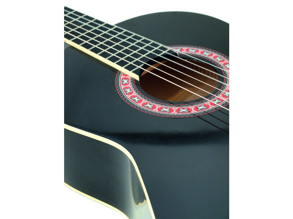 Klasyczna gitara 4/4. Płyta wierzchnia świerk, gryf klon, podstrunnica palisander. Kolor czarny.