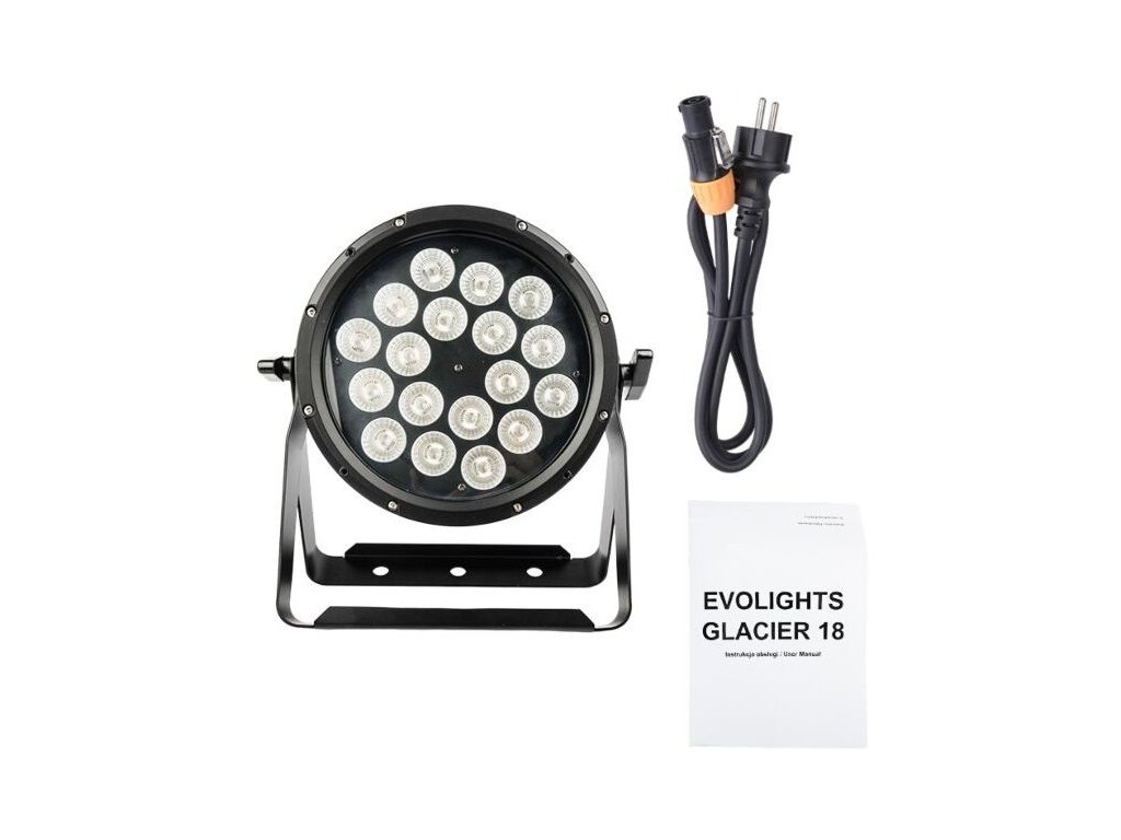 EVOLIGHTS GLACIER 18 to wysokiej jakości urządzenie oświetleniowe, które idealnie sprawdzi się dla każdego, kto potrzebuje profesjonalnego oświetlenia scenicznego do zastosowań zewnętrznych i wewnętrznych. Ten reflektor sceniczny LED oferuje wyjątkową jakość światła dzięki osiemnastu wydajnym diodom LED w palecie kolorów RGBWA-UV o mocy każdej z nich 12 W. Stopień ochrony IP65 gwarantuje ochronę przed kurzem, a także przed strugami wody, zapewniając w ten sposób ochronę w warunkach zewnętrznych i wewnętrznych. Dzięki ściemniaczowi o pełnym zakresie użytkownicy mogą łatwo regulować jasność światła w zależności od potrzeb. Urządzenie oświetleniowe jest wyposażone w stroboskop z regulowaną prędkością, co pozwala użytkownikom tworzyć dynamiczne efekty świetlne.