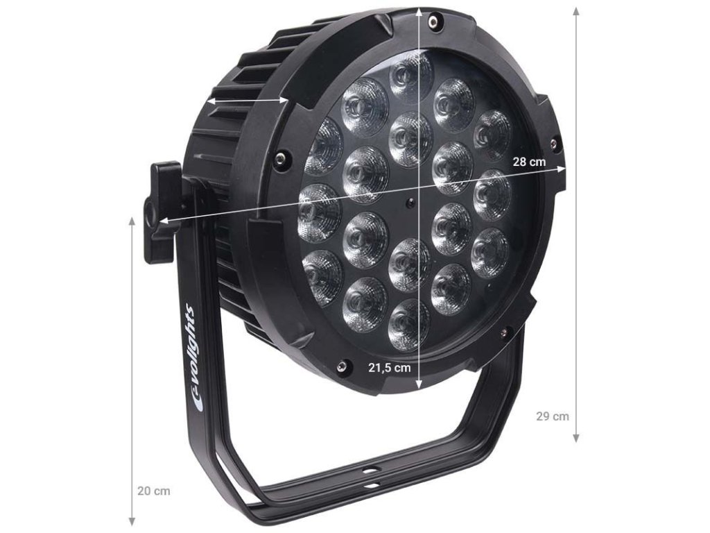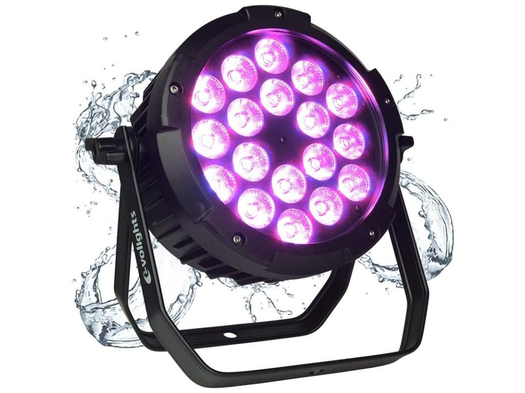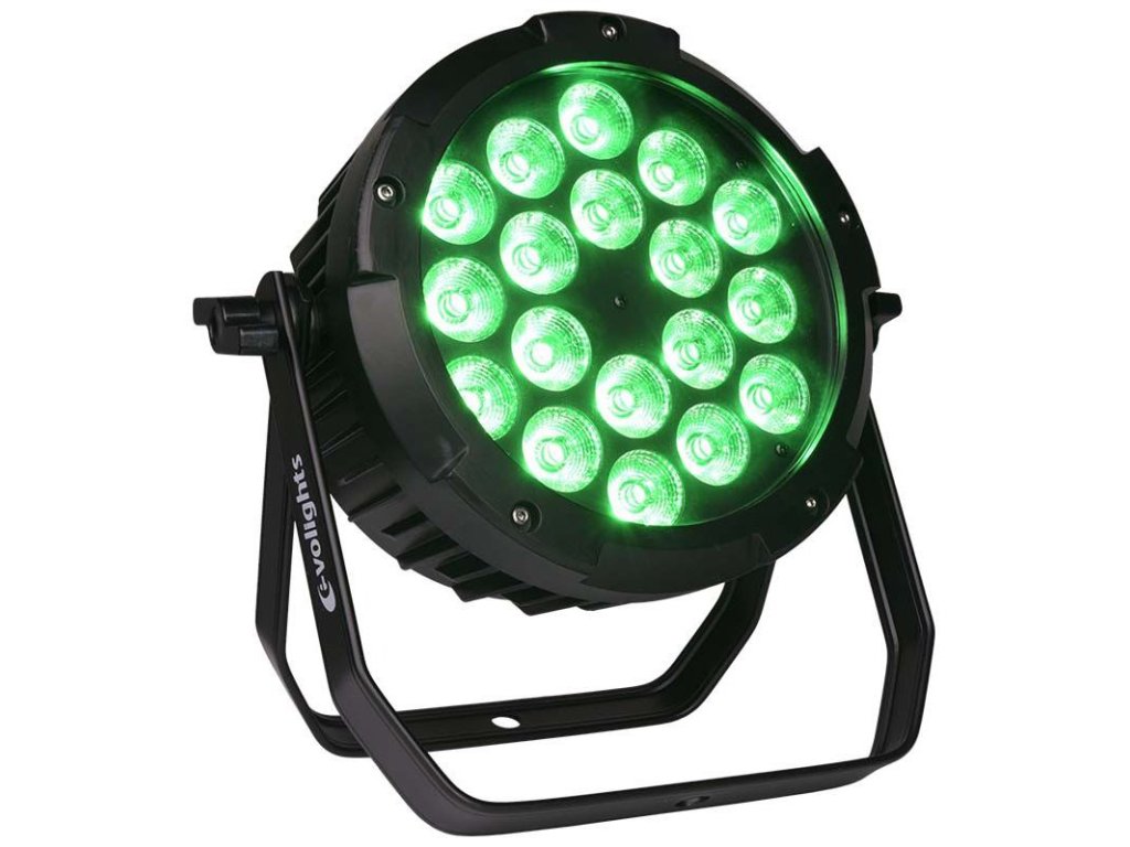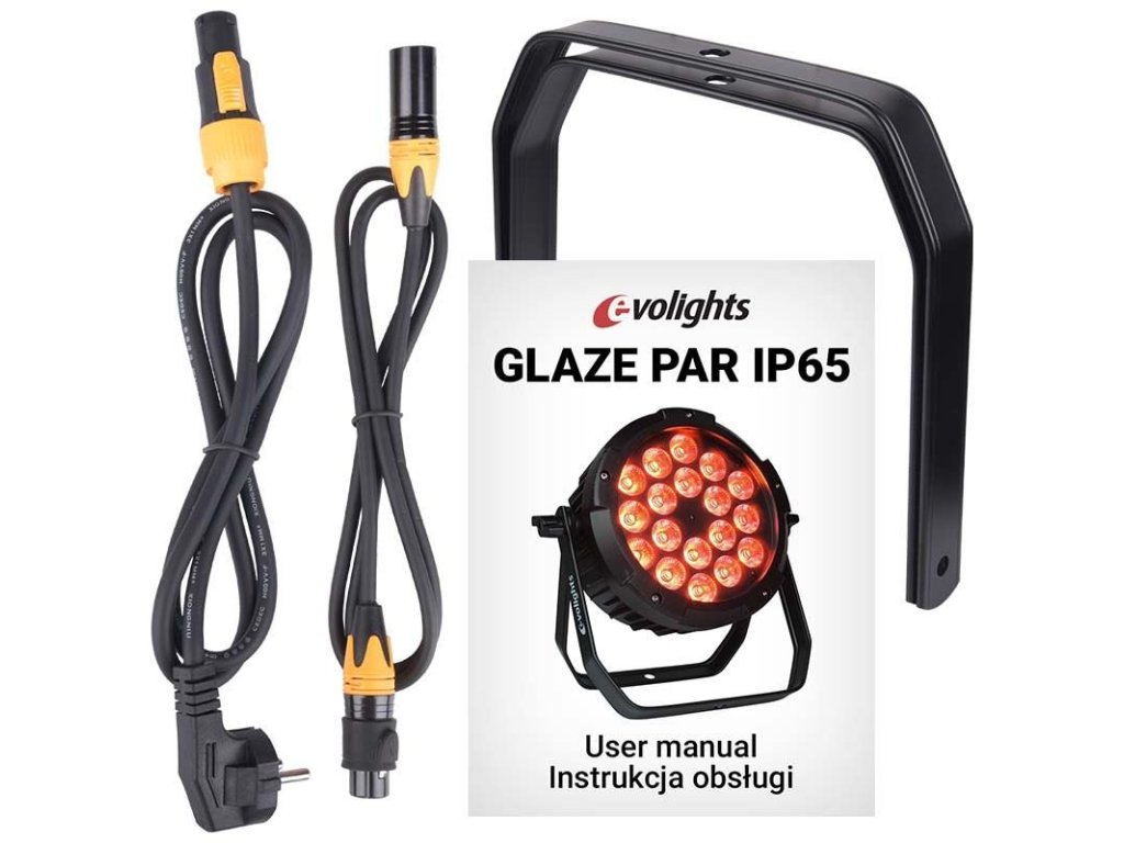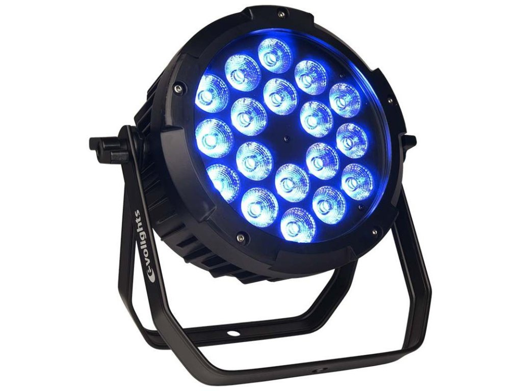 Evolights Glaze Par to profesjonalny, zewnętrzny reflektor LED PAR z 18 wydajnymi diodami RGBW LED (4w1). Iluminator umożliwia pracę w szerokiej gamie kolorów i ich odcieni, a dzięki funkcji płynnego przejścia między kolorami i pełnozakresowej regulacji jasności jest doskonałym wyborem do oświetlania wszelkiego rodzaju wydarzeń: prezentacji, występów scenicznych, koncertów na świeżym powietrzu, imprez klubowych i dyskotek. Reflektor punktowy idealnie nadaje się również do zewnętrznego oświetlenia dekoracyjnego fasad budynków restauracji, hoteli, pubów, sal weselnych i bankietowych, a także innych elementów fasadowych i architektonicznych.