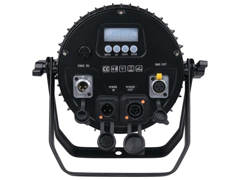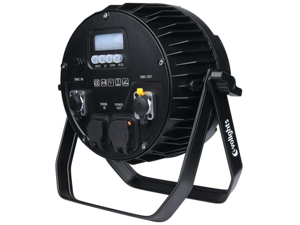 Evolights Glaze Par posiada specjalnie zaprojektowaną aluminiową obudowę, która chroni reflektor przed kurzem, brudem, a także deszczem i śniegiem. Umożliwia to stosowanie LED par w instalacjach zewnętrznych niemal w każdych warunkach pogodowych. Podwójny, solidny wspornik montażowy pozwala nam umieścić światło w dowolnym miejscu lub zawiesić je na zaciskach, rampach lub kratownicach oświetleniowych. Parametry pracy urządzenia możemy zmieniać za pomocą panelu sterowania składającego się z cyfrowego wyświetlacza i czterech przycisków. Za ich pomocą możemy poruszać się po menu, ręcznie ustawić kolor światła reflektora lub wybrać jeden z kilku dostępnych trybów pracy urządzenia: