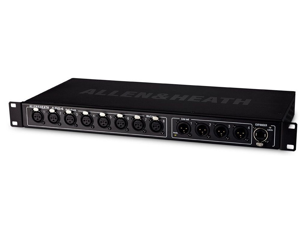 Allen&Heath GLD-AR84 Black • ekspander Audio Rack dla cyfrowego systemu mikserskiego GLD • 8x mikrofonowe/liniowe wejście XLR • 4x wyjście XLR • dSnake, kabel CAT-5, do 120m • do jednego systemu GLD można podłączyć do dwóch GLD-AR84 • wymiary 483x220x48 (mm) • waga 3 kg