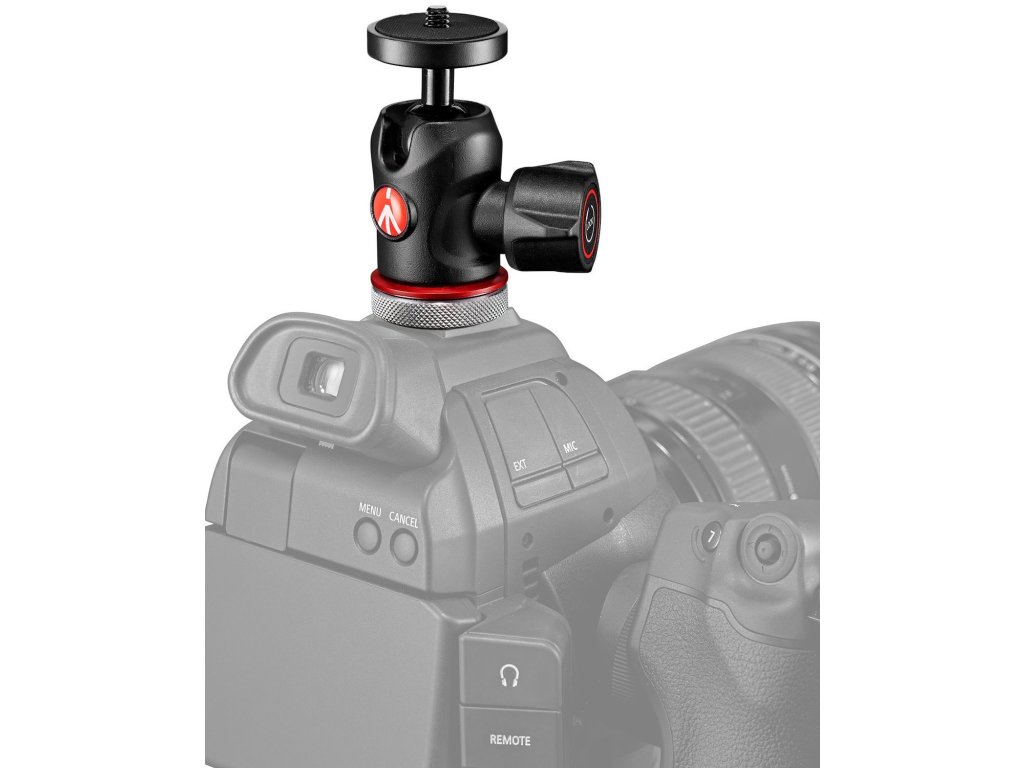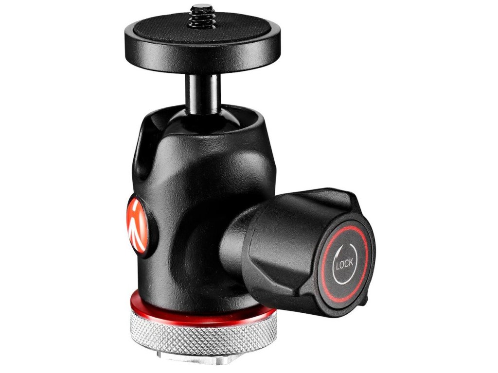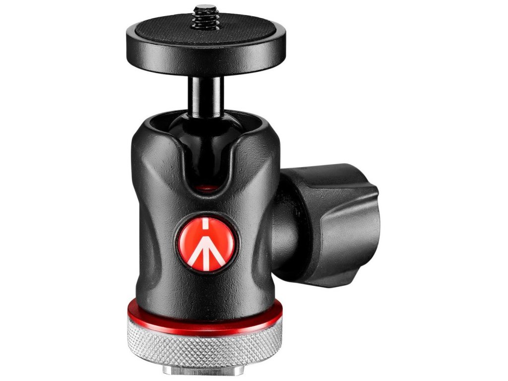 Mini głowica kulowa z mocowaniem do sanek lampy błyskowej w aparacie, wykonana z aluminium, z tylko jednym pokrętłem do dokręcania pozycji. Umożliwia robienie zdjęć w pionie dzięki rowkowi w łożysku kuli, w który dokładnie pasuje słupek pod kątem 90°. Pomimo bardzo małych rozmiarów ma imponującą nośność 4 kg.