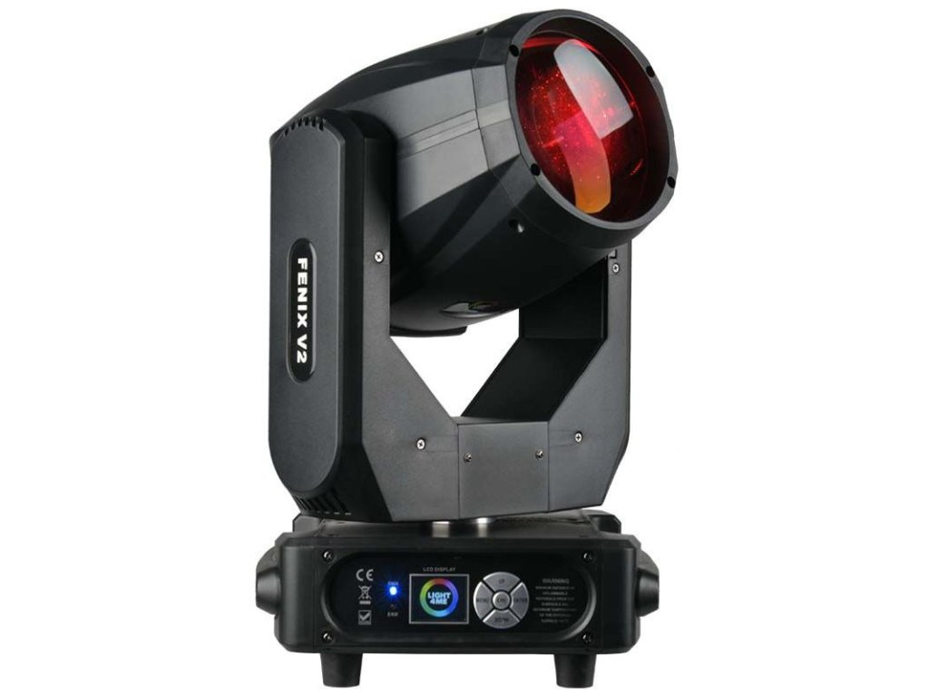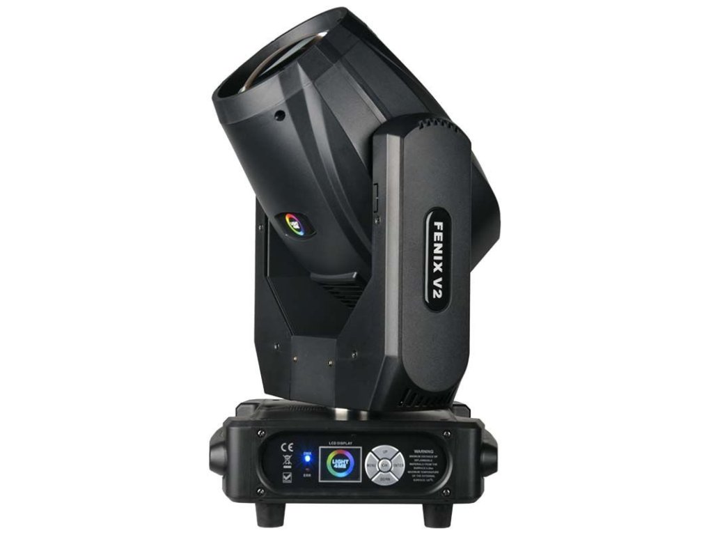 Light4Me Fenix V2 to zaawansowana technologicznie głowica oferująca szereg profesjonalnych funkcji i efektów stosowanych w oświetleniu scenicznym. Ruchoma głowica jest wyposażona w 15 filtrów i tarczę gobo z 13 nowoczesnymi wzorami. Światło ma dwa pryzmaty umieszczone na dwóch niezależnych kołach. Dzięki nim można tworzyć ciekawe efekty wizualne. Wąski kąt świecenia wynoszący zaledwie 2° może dodatkowo, za pomocą wbudowanego filtra frost, zmienić się w miękkie i szeroko rozproszone światło.