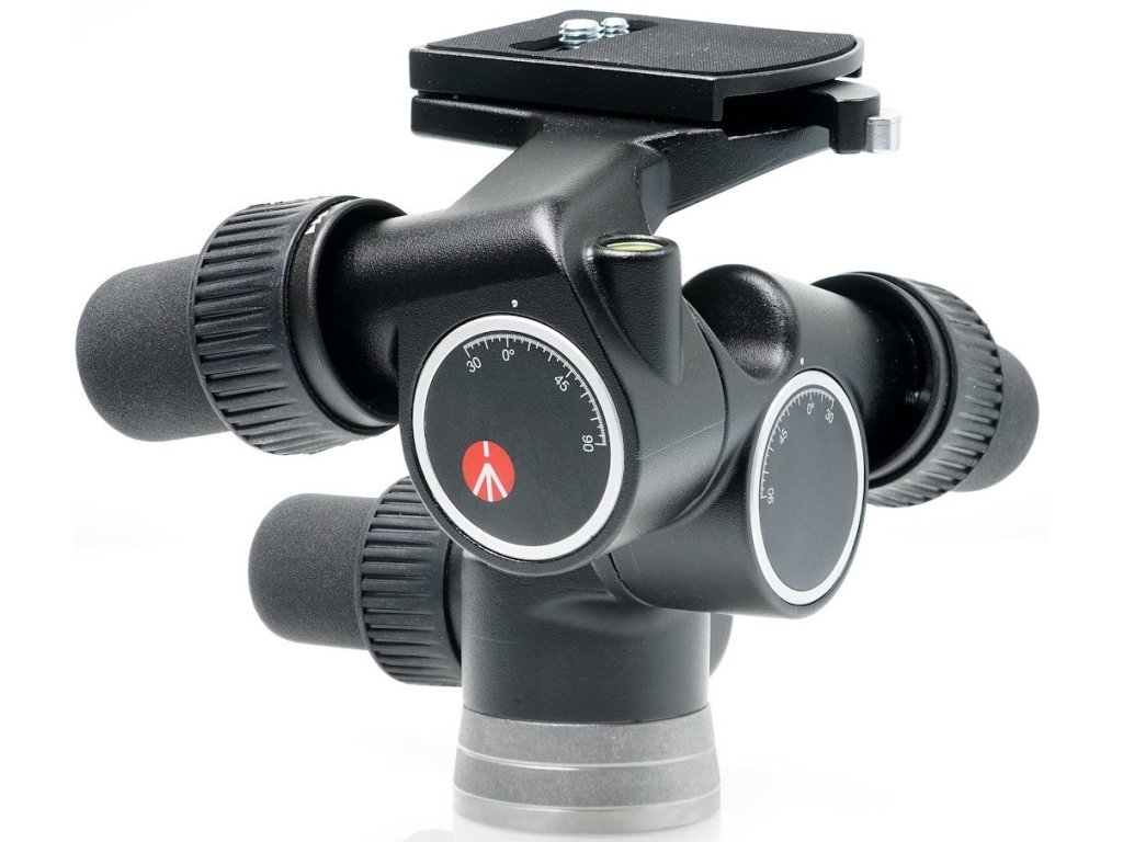 Lekka głowica statywowa, duże ergonomiczne pokrętła sterujące zapewniają płynny i prosty obrót o 360°, w pozycji poziomej nachylenie czołowe lub boczne od 90° do -30°. Dzięki temu zapewnisz sobie większą kontrolę nad jakością kluczowych ujęć. Innowacyjna konstrukcja głowicy umożliwia również łatwą ręczną regulację pozycji aparatu. Gdy aparat jest na swoim miejscu, można natychmiast ponownie wykorzystać kółka stabilizujące do ostatecznego i bardzo precyzyjnego wyrównania.