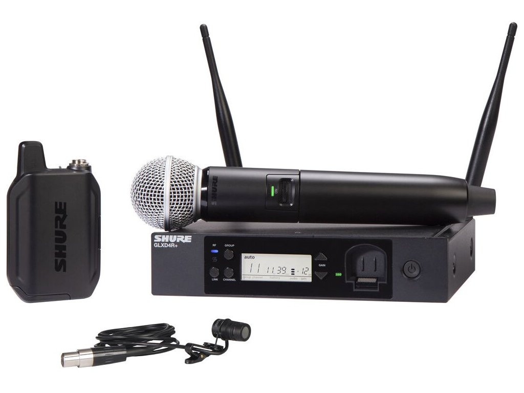 Przejdź na łączność bezprzewodową bez komplikacji! Nowy dwupasmowy bezprzewodowy zestaw combo, wyposażony w wysokiej jakości popularny mikrofon ręczny SM58, wysokiej klasy mikrofon krawatowy WL185, nadajnik bodypack GLXD1+ i odbiornik GLXD4R+ (do montażu w szafie rack). System jest dostosowany tak, aby zapewnić maksymalną elastyczność dla szerokiej gamy zastosowań. Doskonałe połączenie automatycznego sterowania częstotliwością z nową technologią Dual Band zapewnia niezawodne i spójne działanie, a akumulatory litowo-jonowe firmy Shure zapewniają do 12 godzin użytkowania.