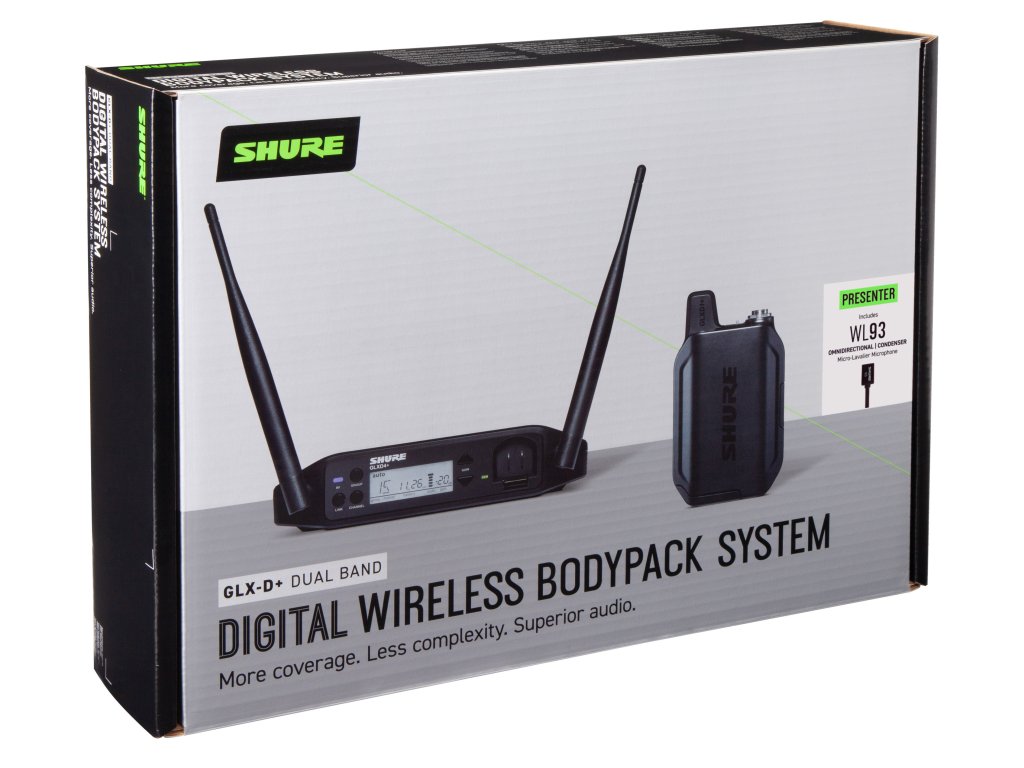 Shure GLXD14+/93 to cyfrowy zestaw bezprzewodowy przeznaczony do rejestrowania mowy. Składa się z mikrofonu krawatowego (lavalier) WL93, nadajnika bodypack GLXD1+ i odbiornika GLXD4+. Zestaw pracuje w nielicencjonowanych pasmach 2,4 i 5,8 GHz, zapewnia dźwięk w 24-bitowej rozdzielczości z zakresem dynamicznym do 120 dB. Sprawdzi się wszędzie tam, gdzie stawia się wysokie wymagania dotyczące niezawodności transmisji i czystości dźwięku. Przejrzyste sterowanie umożliwia łatwe uruchomienie całego systemu, kompaktowe wymiary i niska waga nadajnika gwarantują użytkownikowi nieograniczoną mobilność.