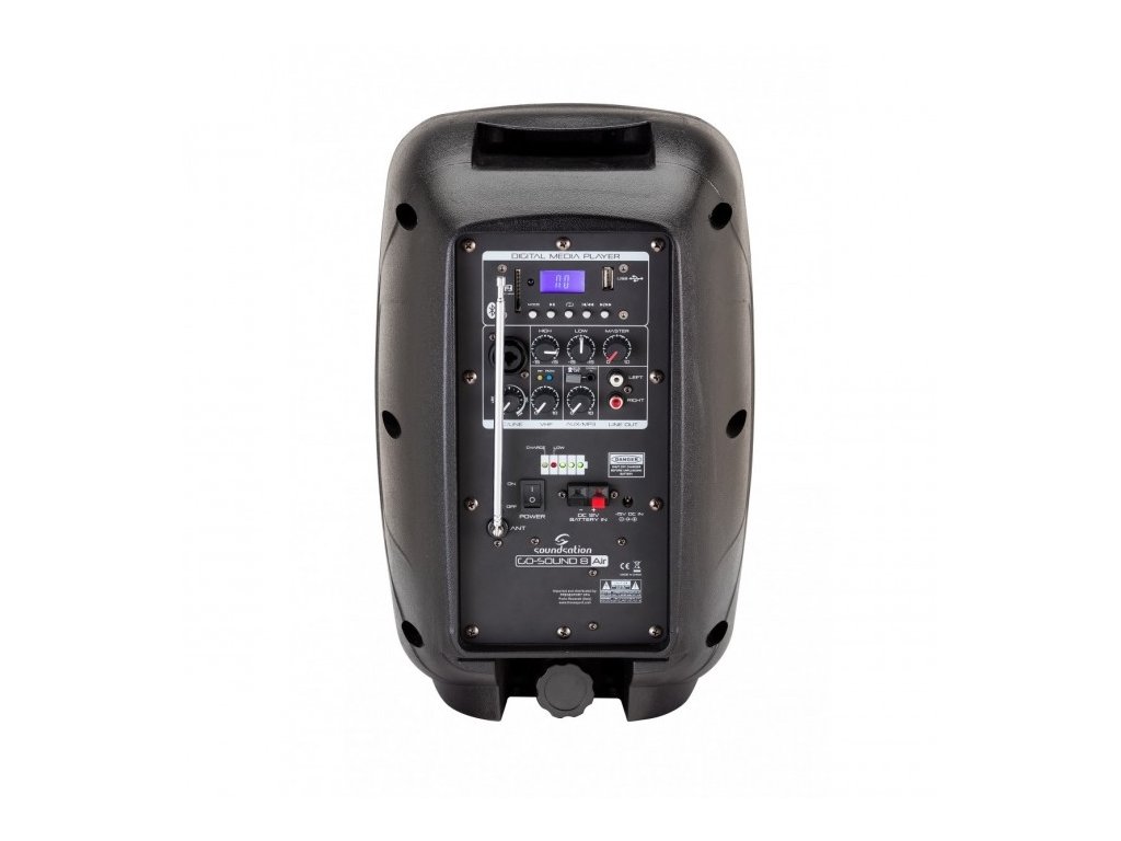 Tylny panel sterowania jest wyposażony w kombinowane wejście XLR/TRS i AUX, dwupasmowy korektor do łatwej regulacji dźwięku oraz zintegrowany odtwarzacz muzyczny. Odtwarzacz posiada czytelny wyświetlacz, gniazdo na kartę SD oraz port USB do podłączenia pamięci flash, co umożliwia łatwe odtwarzanie muzyki z różnych źródeł.