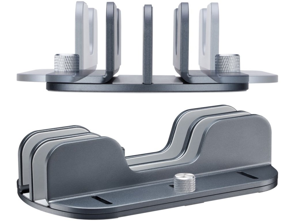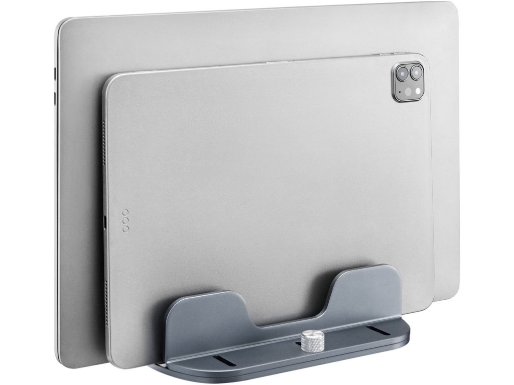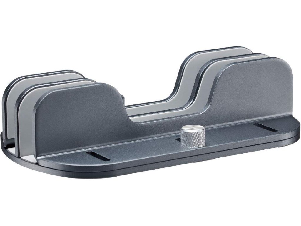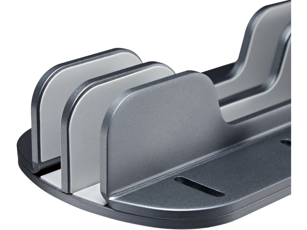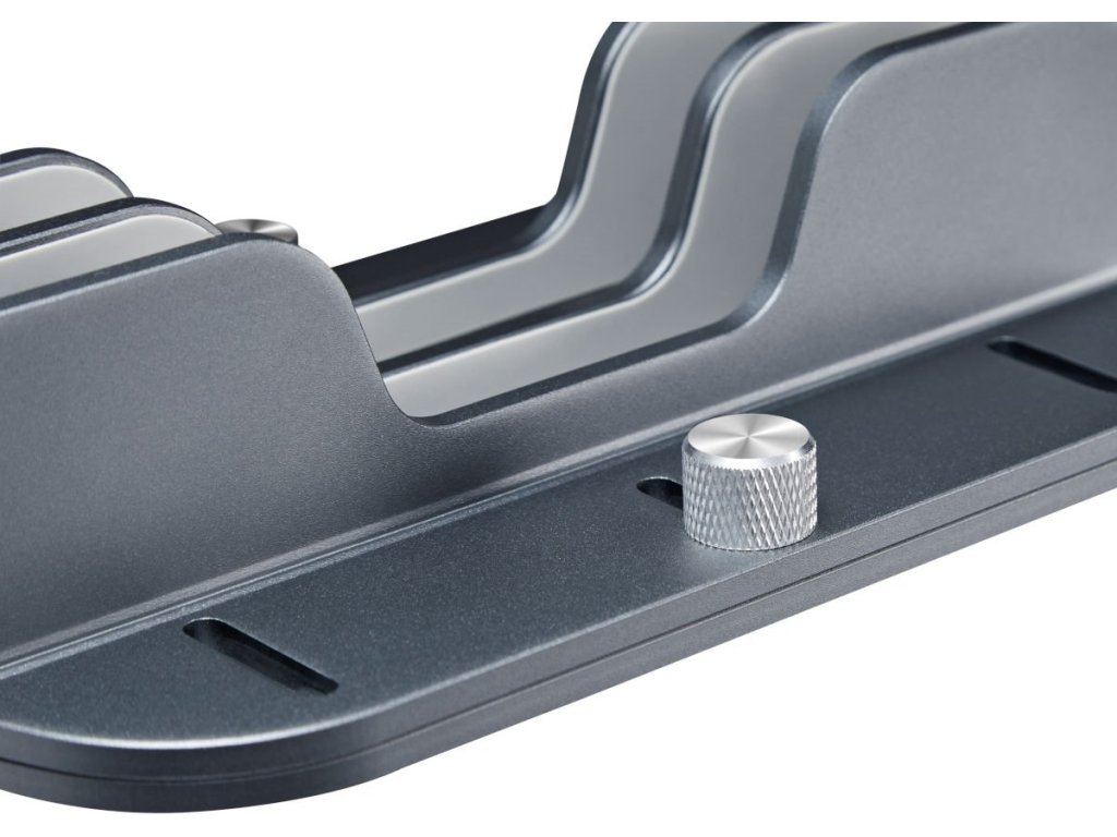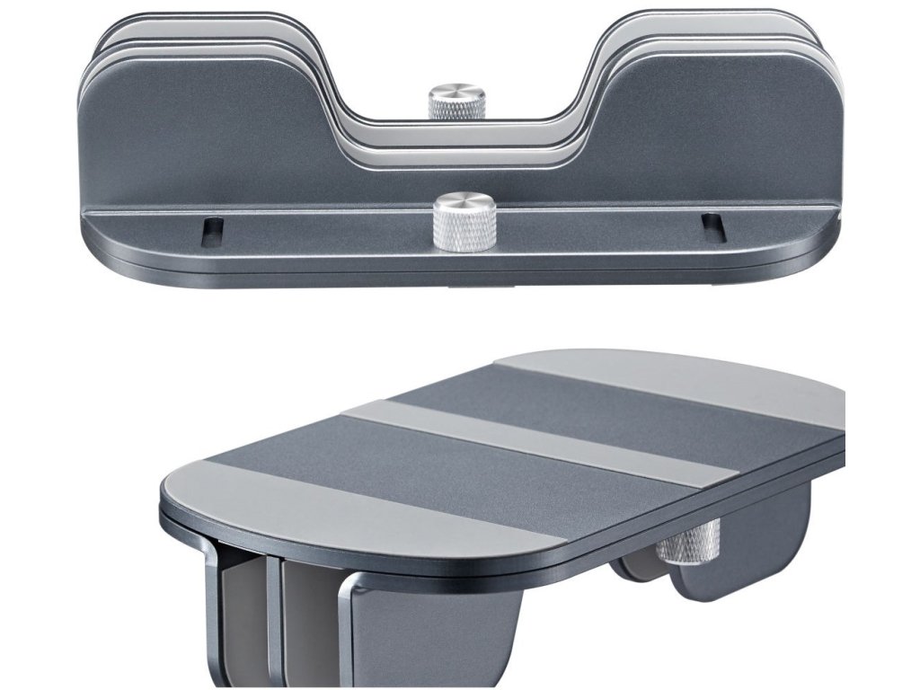 Aluminiowy uchwyt na stół w kolorze szarym.