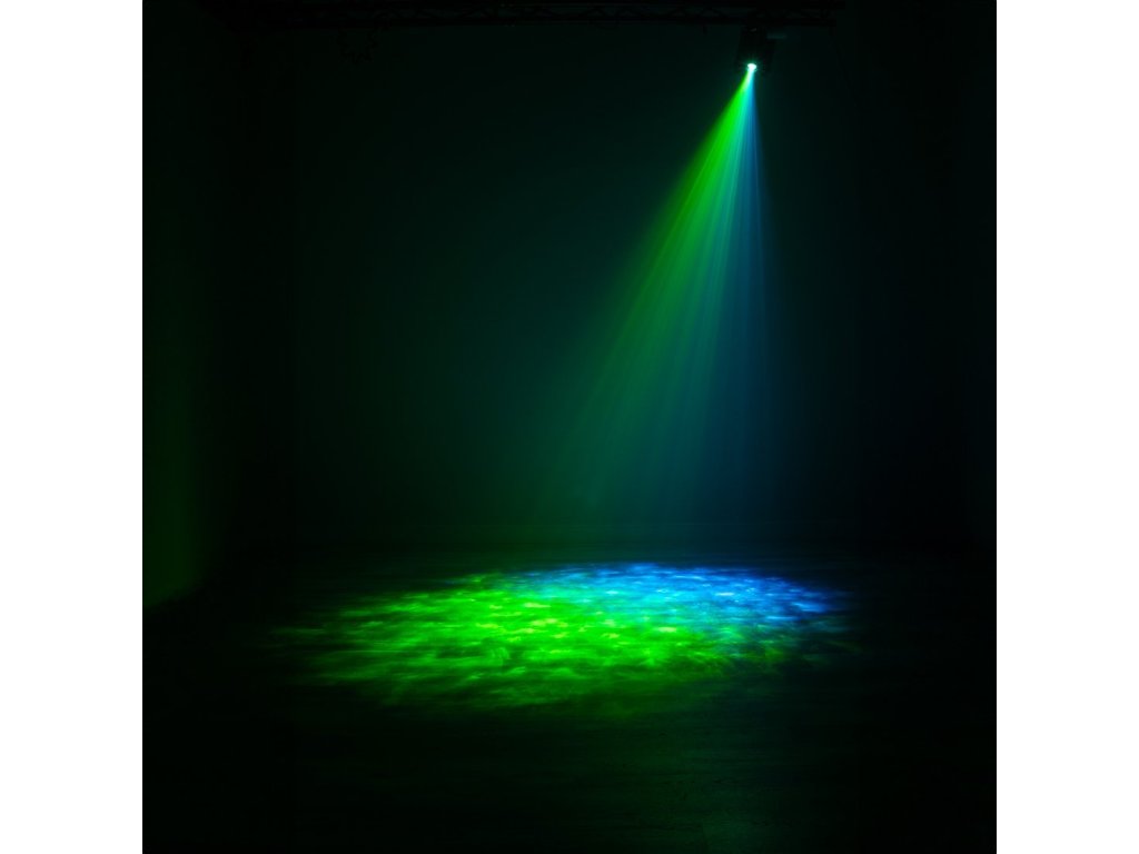 H2O TWO to stymulujący efekt świetlny zaprojektowany, aby wprowadzić dynamiczny efekt przypominający wodę do Twojego pokazu świetlnego. Dzięki jasnemu źródłu światła LED o mocy 120 W emitującemu chłodne białe światło i 5 dichroicznych kolorach, efekt ten tworzy hipnotyzującą symulację wody, którą można wyświetlać na ścianach, sufitach lub podłogach. H2O Two może być używany z mgłą lub bez i jest idealny do oświetlenia dekoracyjnego lub tła.