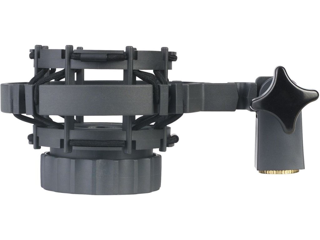 Uniwersalny, amortyzowany uchwyt do mocowania mikrofonu do statywu / ramienia mikrofonowego. Służy do tłumienia przenoszenia zakłóceń do użytecznego sygnału podczas nagrywania i nagłaśniania na żywo (przenoszenie wibracji przez statyw itp.) oraz zapewnia ochronę przed uszkodzeniami mechanicznymi mikrofonów. Wewnętrzny uchwyt jest przymocowany do zewnętrznej obudowy za pomocą gumowego zawieszenia. Ustawienie we właściwej pozycji umożliwia pochylenie w zakresie 180°. Do statywu / ramienia mikrofonowego mocuje się za pomocą standardowego gwintu. Uchwyt jest wykonany w kolorze czarnym. Do mikrofonów o średnicy 19 - 26 mm.