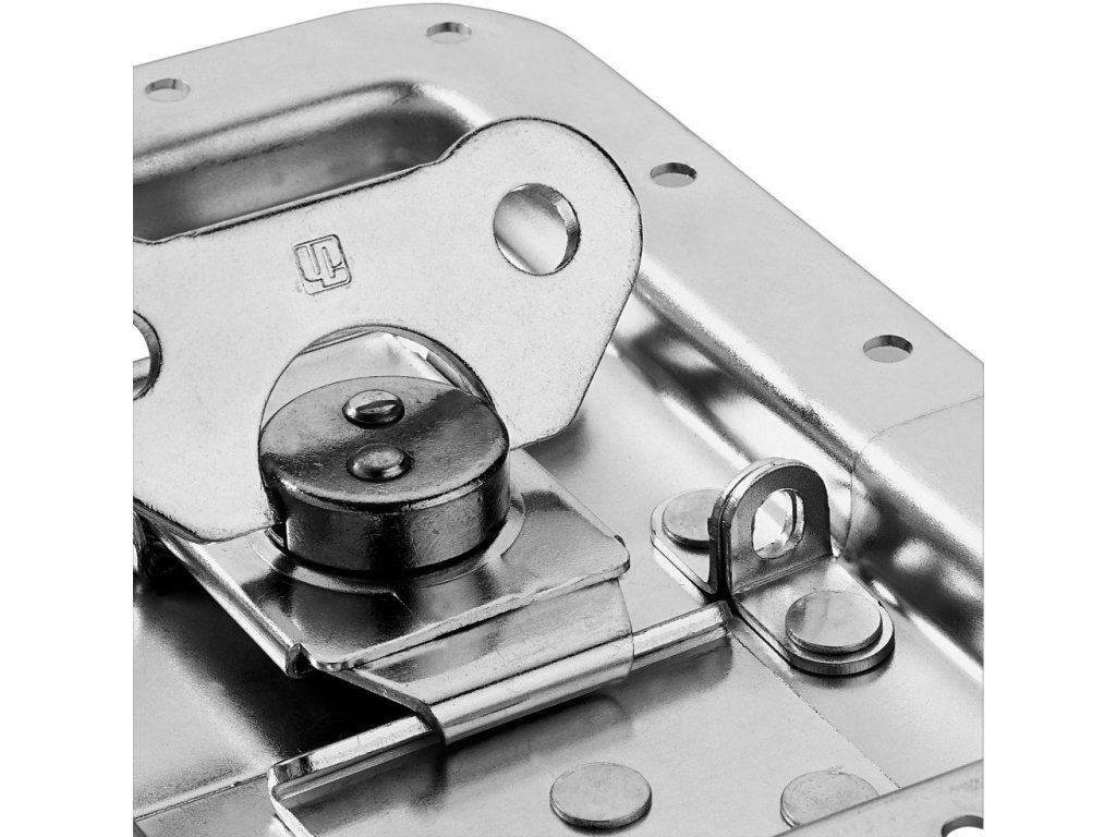 Zamek motylkowy duży, z oczkiem na kłódkę. Mechanizm zamykający zamka motylkowego jest wyposażony w sprężynę przeciwciśnieniową, która automatycznie otwiera go w pozycji otwarcia o około 30º. W razie potrzeby hak zamykający można przesunąć dalej na zewnątrz.