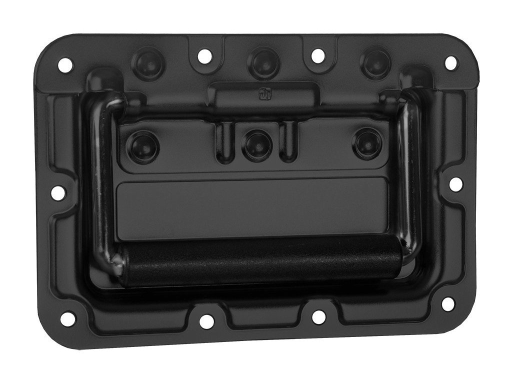 Miska o głębokości 9 mm z ochroną nitów. Czarna stal ocynkowana, otwory montażowe 5,1 mm.