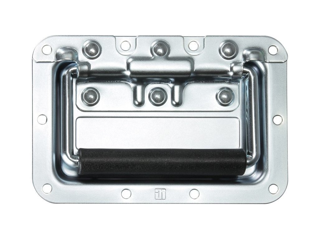 Wpuszczony uchwyt sprężynowy z uchwytem na całej szerokości i wzmocnioną górną płytą z głębokiej stali o grubości 8 mm. Ocynkowana z czarnym uchwytem PVC.