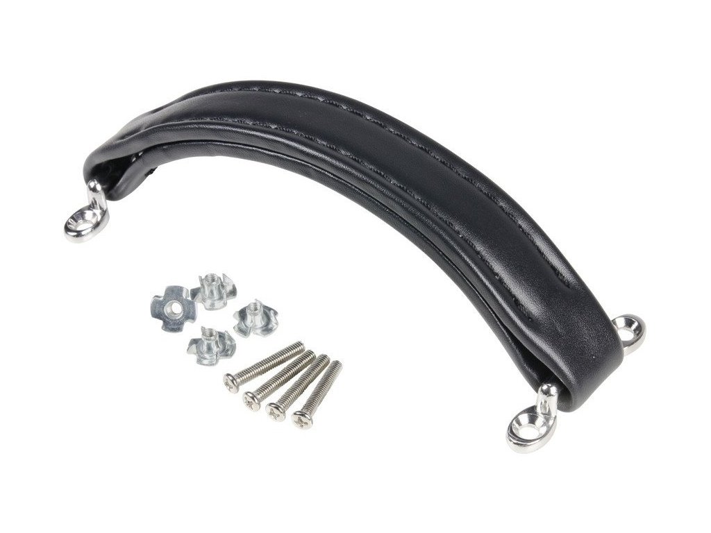 Uchwyt paskowy ze stalową wkładką, niklowane wsporniki montażowe. Dostarczany z 4 nakrętkami trójkątnymi i 4 śrubami (M4x25).