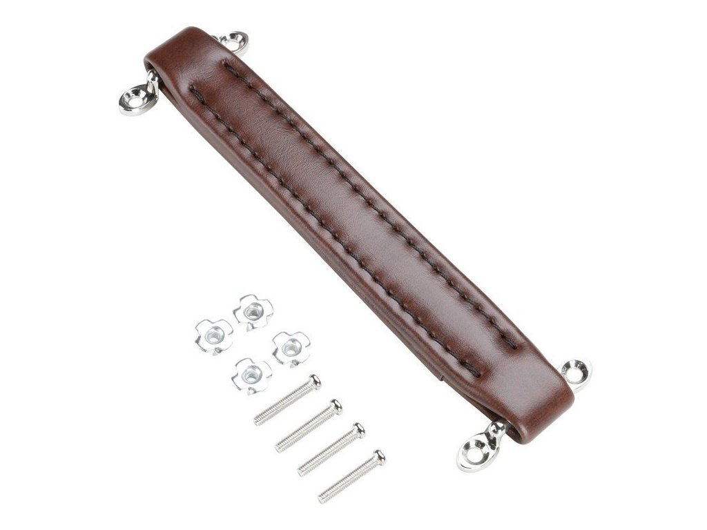 Uchwyt paskowy ze stalową wkładką. Niklowane wsporniki montażowe. Dostarczany z 4 nakrętkami i 4 śrubami (M4x25).