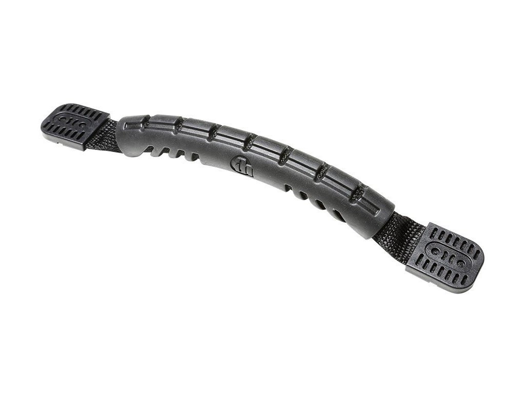 Uchwyt z czarnego paska pokrytego czarną gumą.