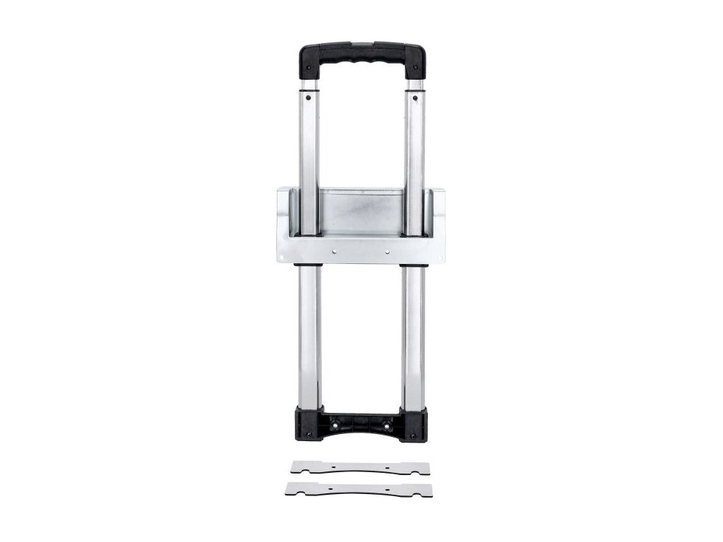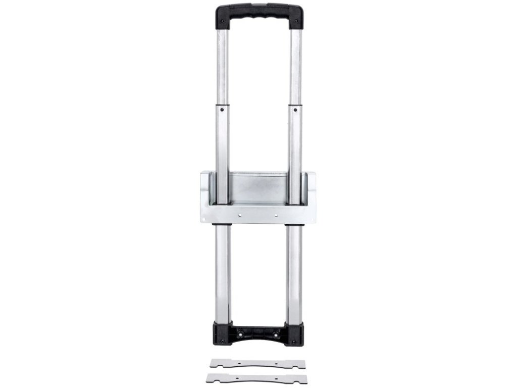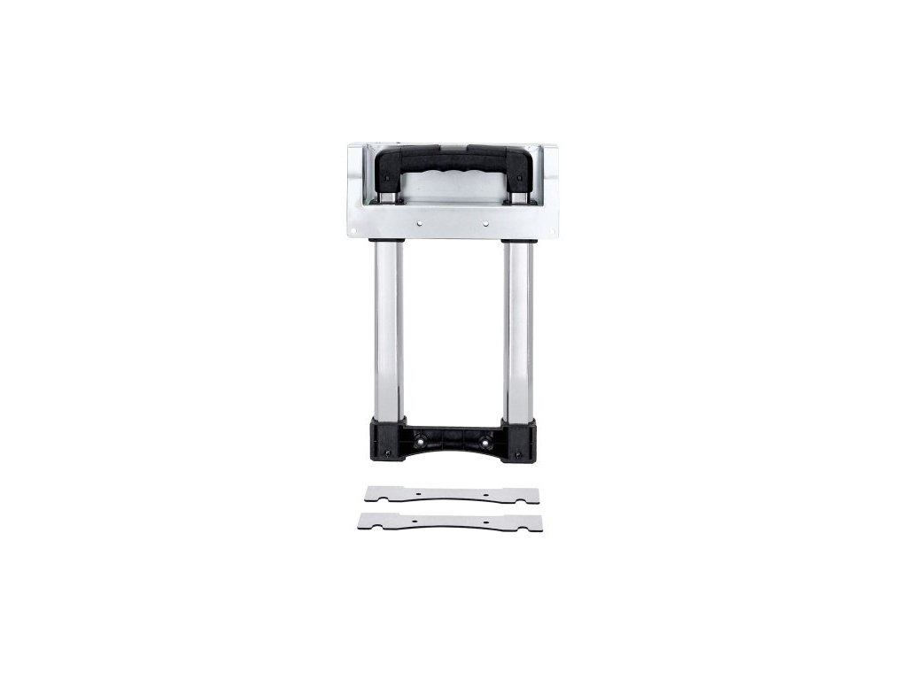 Wpuszczany uchwyt teleskopowy z dwoma stopniami, mechanizm blokujący z przyciskiem zwalniającym w uchwycie, do montażu wewnątrz kufra, w zestawie podkładki do stosowania z drewnem o grubości 7 mm.