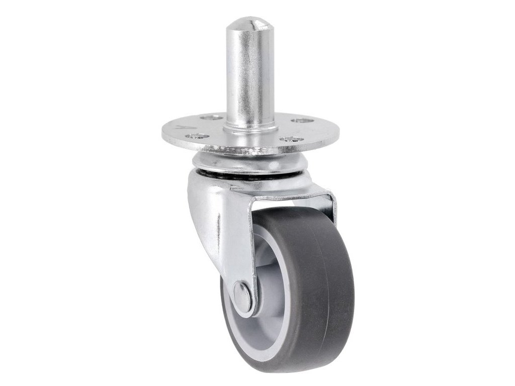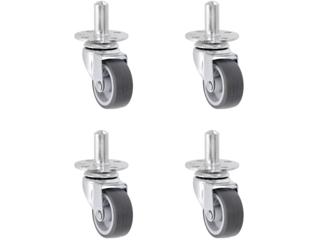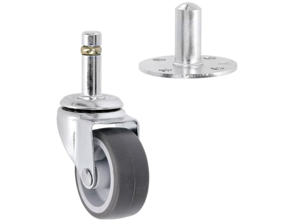 Zestaw czterech kółek wtykowych 50 mm z obejmą montażową.