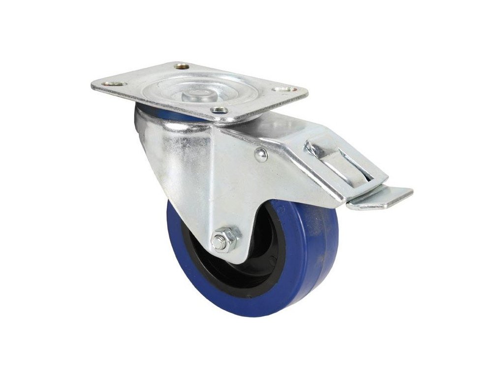 Kółko obrotowe 100 mm z niebieskim kółkiem i hamulcem.