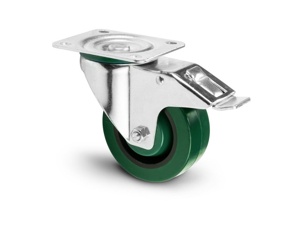 Kółko obrotowe 100 mm Heavy Duty z zielonym kółkiem i hamulcem.