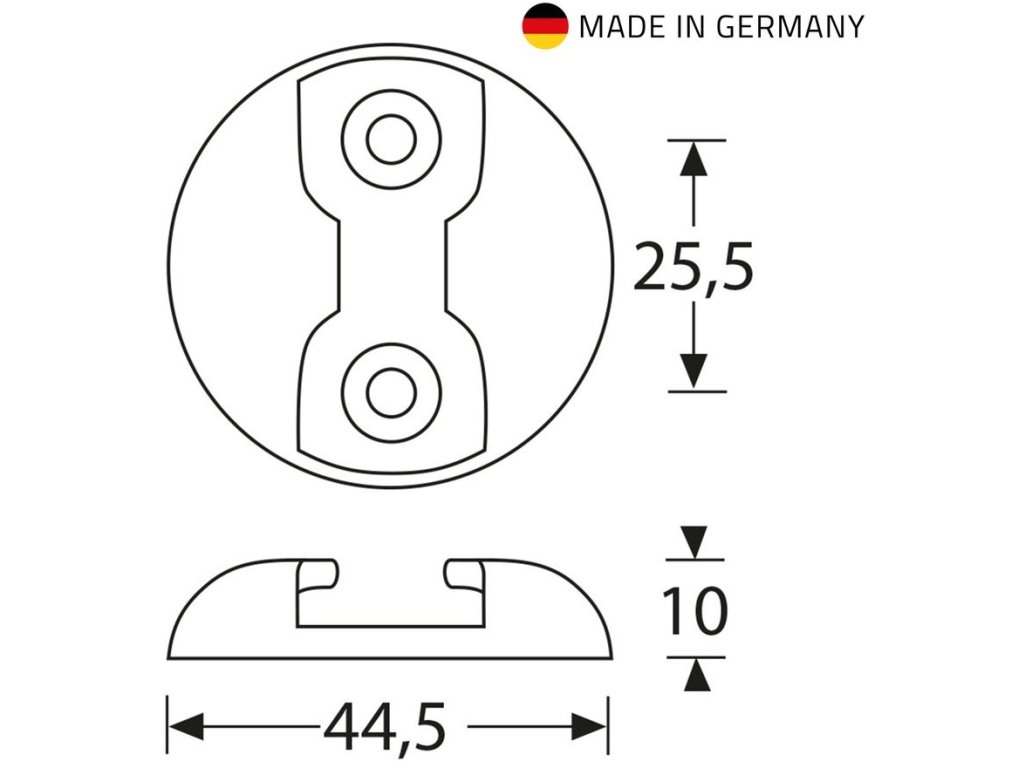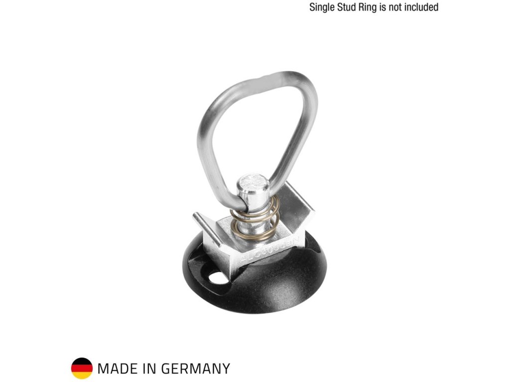 Punkt mocowania z czarnego, anodowanego aluminium. Specjalnie zaprojektowany do późniejszego montażu na przykład na obudowie głośnika. Elastycznie montowany panel ma bezpośrednią nośność na rozciąganie do 500 daN.