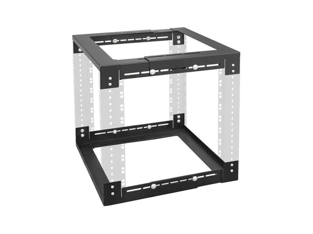Za pomocą czterech ram i czterech elementów szyny nośnej o wymaganej wysokości można łatwo i szybko skręcić solidną klatkę do mocowania. Ramy można dowolnie montować na głębokość od 395 do 600 mm. Kompletnie zmontowaną ramę można zamontować w stojaku za pomocą czterech elastycznych gumowych bloków montażowych z każdej strony. Ten produkt składa się z 4 części: 2 zostaną użyte do górnej części, a 2 do dolnej części. Z 4 sztukami listwy stojakowej (61552BLK nie wchodzi w skład zestawu) rama będzie kompletna.