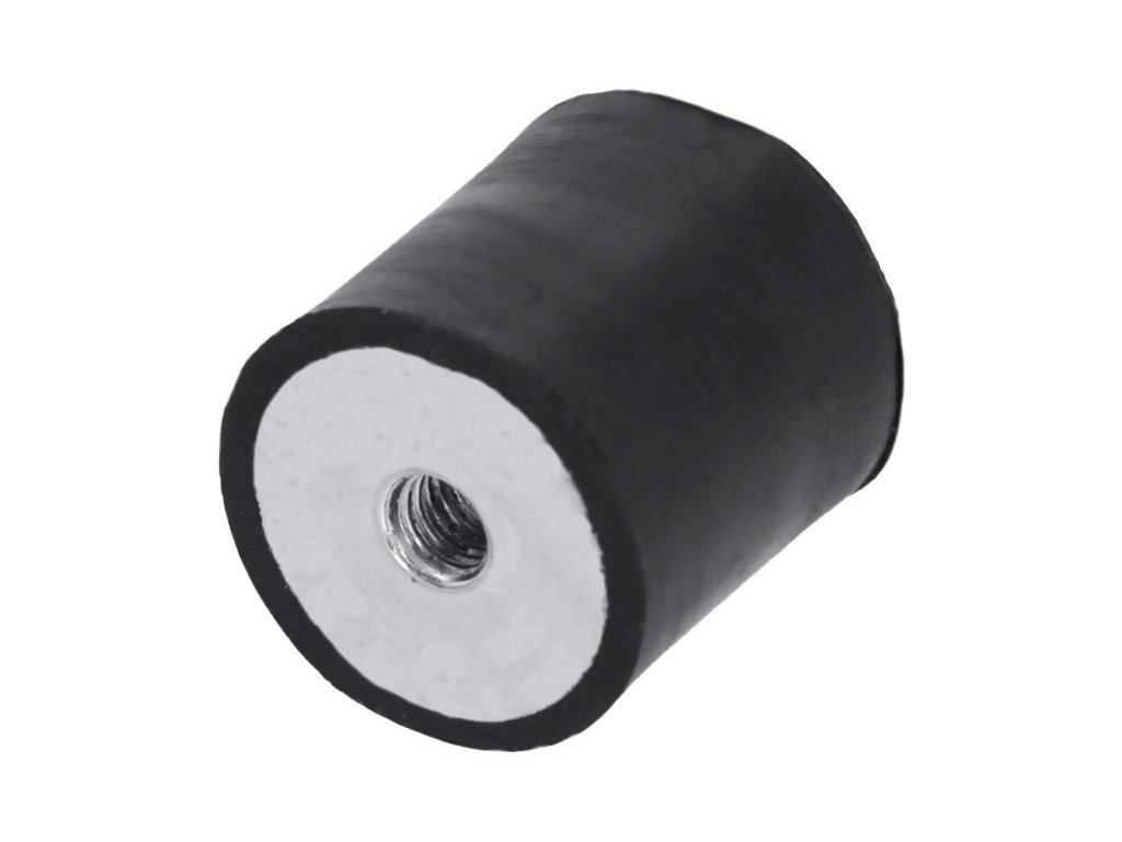 Okrągły, wahliwy, metalowy silentblok z dwoma gwintami wewnętrznymi M6 do zawieszenia ramy z amortyzatorem.