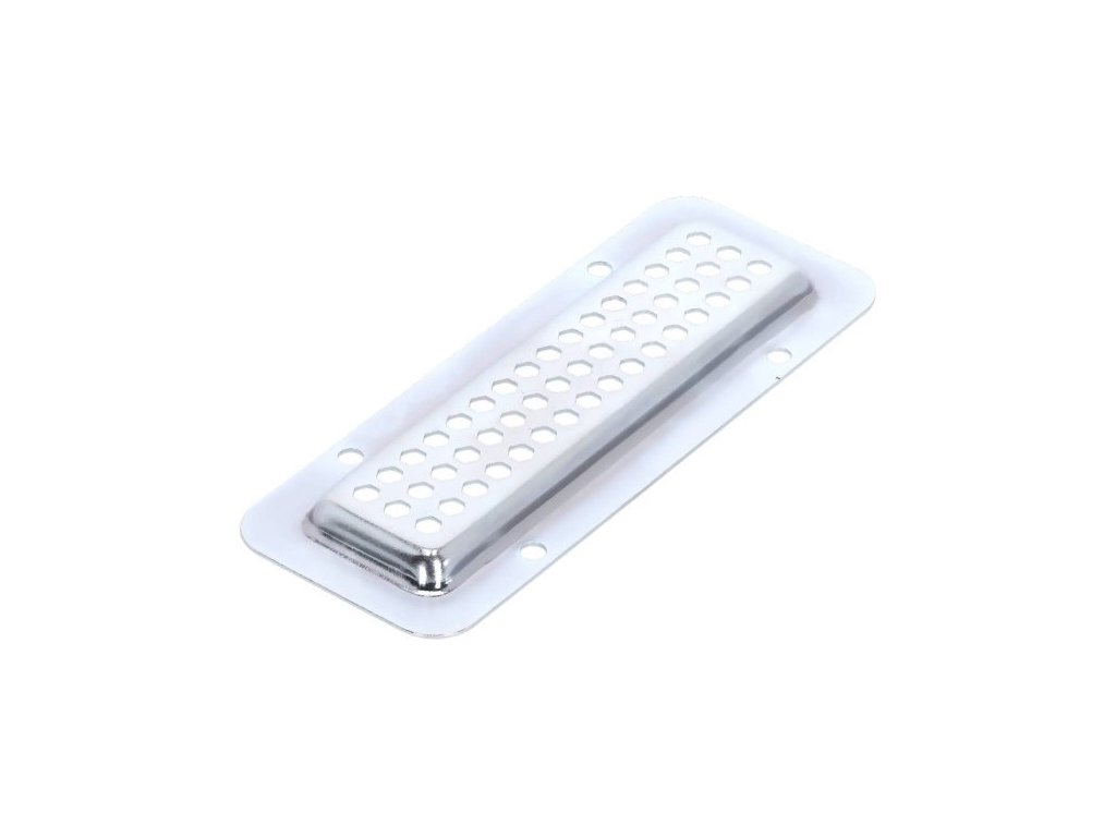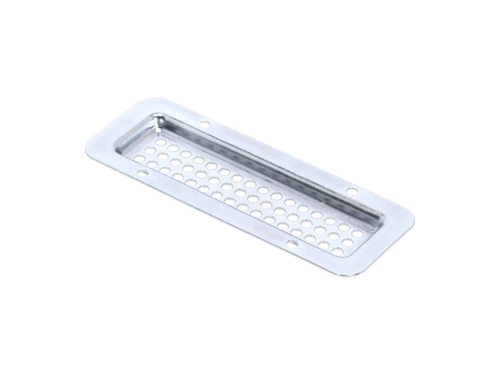 Mała prostokątna miska wentylacyjna, dzięki wymiarom odpowiednia również do montażu w płaskich pokrywach.