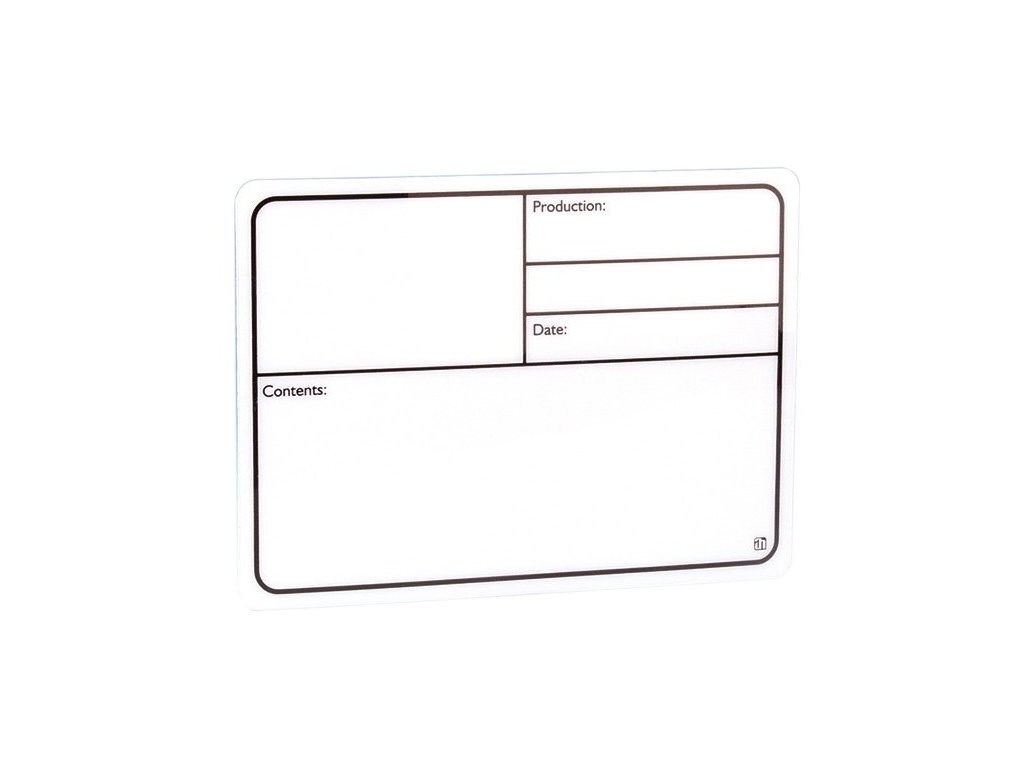 Samoprzylepna etykieta, biała, laminowana z ochronną powierzchnią z przezroczystej folii. Można ją łatwo czyścić i używać ponownie bez blaknięcia nadruku.