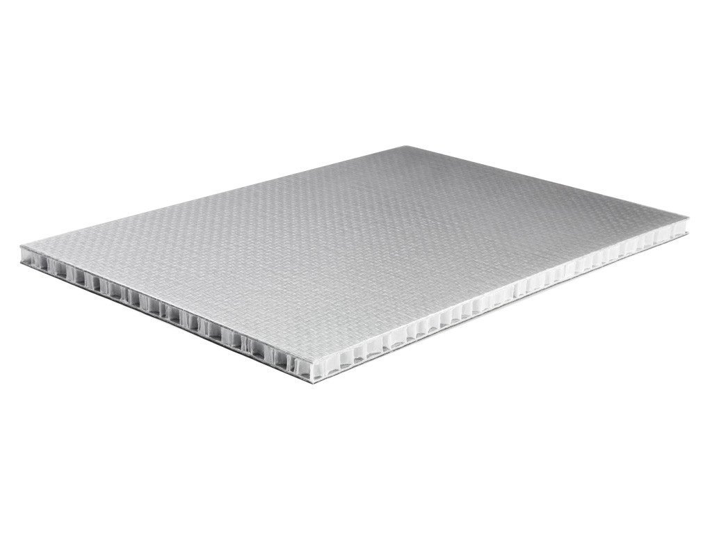 Zaawansowany technologicznie materiał warstwowy z PP (polipropylenu). Dzięki specjalnej obróbce surowca panele są wyjątkowo stabilne i sztywne przy swojej wadze. Powierzchnia paneli jest chroniona cienką warstwą PET, która zapewnia wysoką odporność materiału na promieniowanie UV i łatwość klejenia.