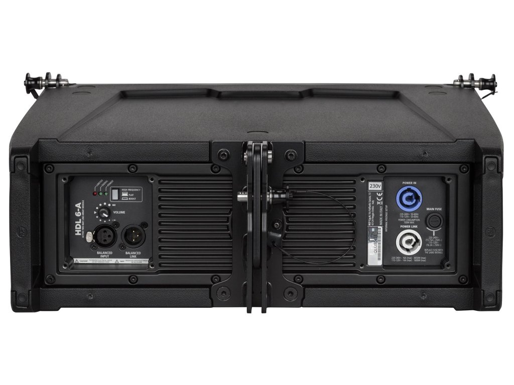 HDL 6-A to idealny wybór do zastosowań wymagających właściwości line array, a jednocześnie szybkiej i łatwej instalacji. Moduł jest wyposażony w najnowocześniejsze głośniki RCF: o solidną podstawę basową dba para mocnych neodymowych 6,5" głośników średniotonowych z 2" cewką; czysty i szczegółowy przekaz wokali z niewiarygodną dynamiką zapewnia 1" wysokowydajny neodymowy głośnik ciśnieniowy z 1,7" cewką zainstalowany na precyzyjnym falowodzie o kierunkowości 100° x 10°. Głośniki są wzbudzane dwukanałowym wzmacniaczem o szczytowej mocy 1400W pracującym w klasie D. Wszelkie przetwarzanie sygnału, w tym zwrotnica, korekcja fazowa, limitery i zabezpieczenia, odbywa się za pomocą wydajnego procesora DSP.