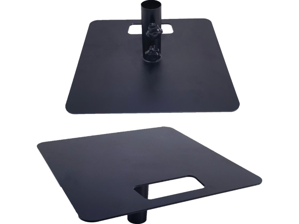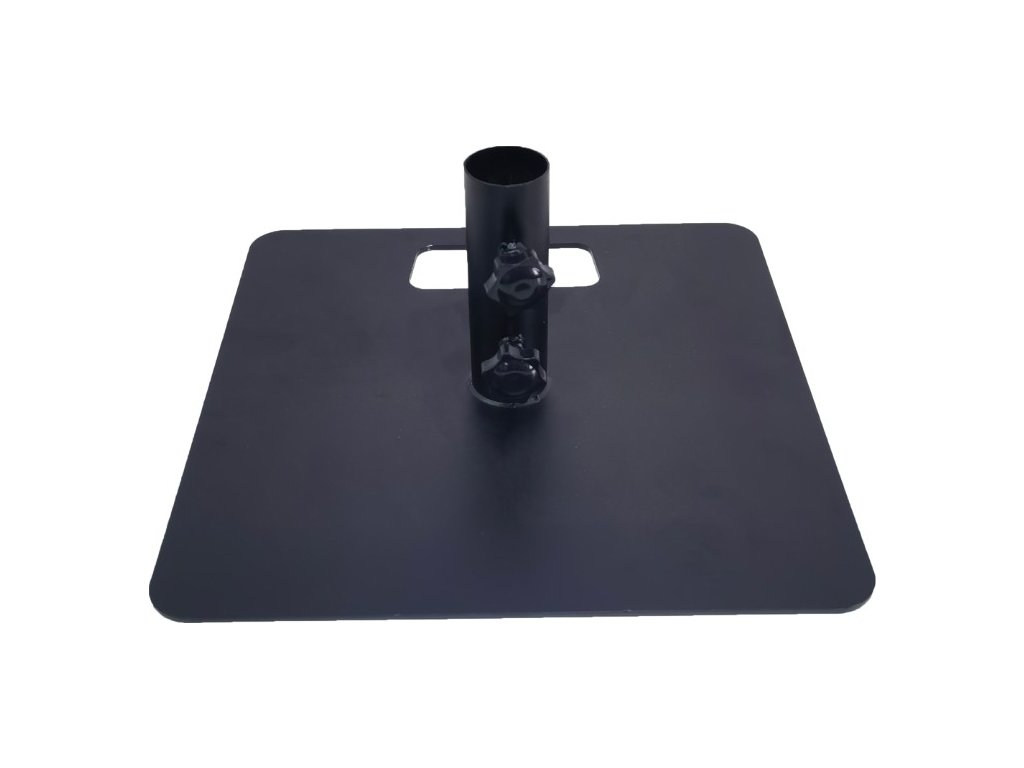 DNA Head Plate 1 to kwadratowa podstawa wyposażona w rurę o średnicy 38 mm, przeznaczona do montażu na statywach oświetleniowych. Wykonana z wysokiej jakości stali, charakteryzuje się solidnością i wytrzymałością, co gwarantuje długotrwałe użytkowanie w różnych warunkach pracy. Malowanie proszkowe zapewnia odporność na zarysowania i korozję, dzięki czemu adapter pozostaje w idealnym stanie przez długi czas. Dzięki maksymalnemu udźwigowi do 50 kg jest to idealne rozwiązanie do profesjonalnego użytku w branży DJ, eventowej, fotograficznej i filmowej.