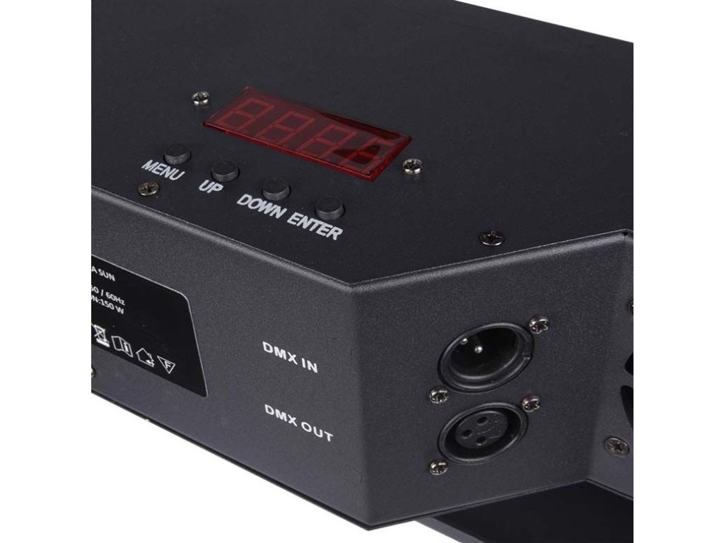 Listwa LED Light4Me Hexa Sun jest łatwa w obsłudze na kilka sposobów. Urządzenie może pracować samodzielnie lub być sterowane, dzięki czemu idealnie nadaje się na każdą imprezę. Panel sterowania składa się z cyfrowego wyświetlacza LED i 4 przycisków. Za ich pomocą możemy dokonywać zmian ustawień w menu, ustawić reflektor na statyczne świecenie lub wybrać jeden z 4 trybów pracy: