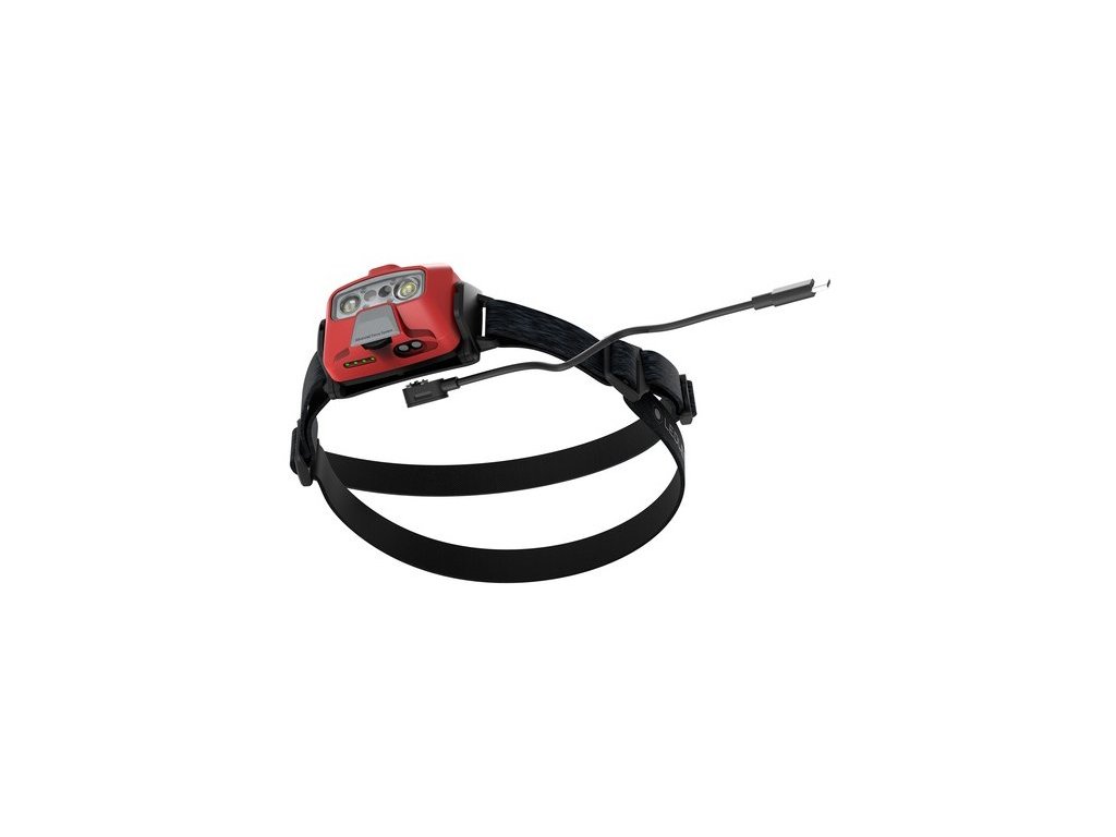 - Smukła, ładowalna latarka czołowa z trzema poziomami jasności i czerwonym światłem przednim