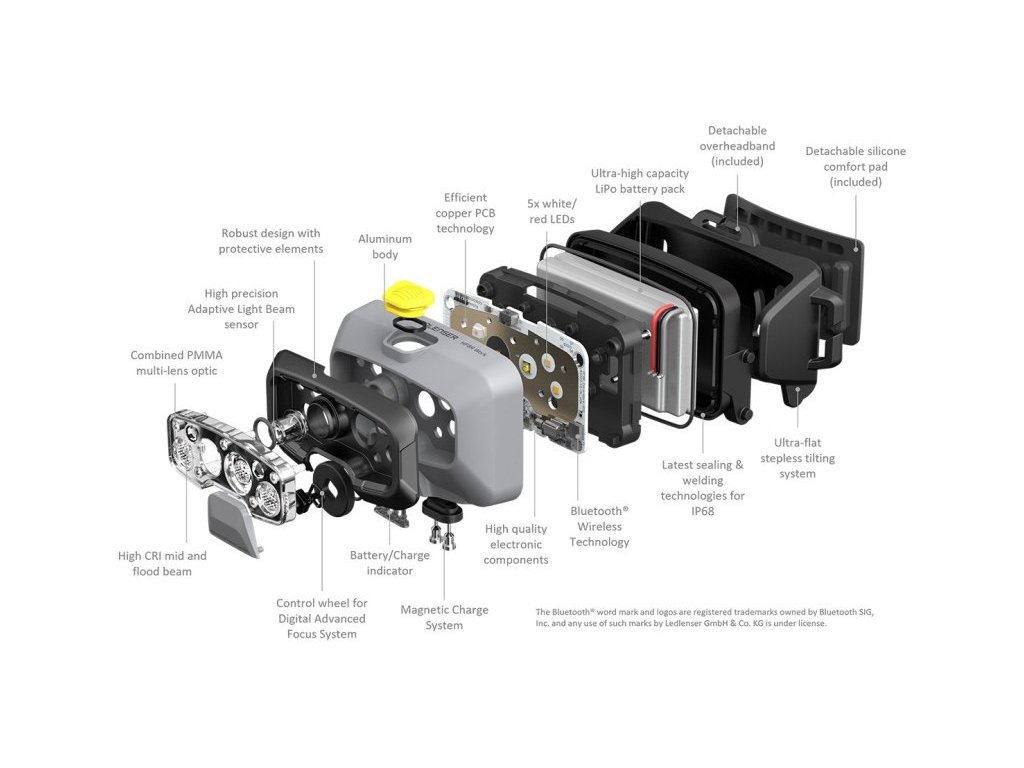 Zintegrowany akumulator można łatwo ładować za pomocą magnetycznego systemu ładowania. Oczywistością jest wskaźnik stanu baterii. Latarka czołowa jest dzięki stopniowi ochrony IP68 odporna na kurz i zanurzenie na głębokość do 1 metra. Może spaść nawet z wysokości dwóch metrów bez obawy o uszkodzenie.