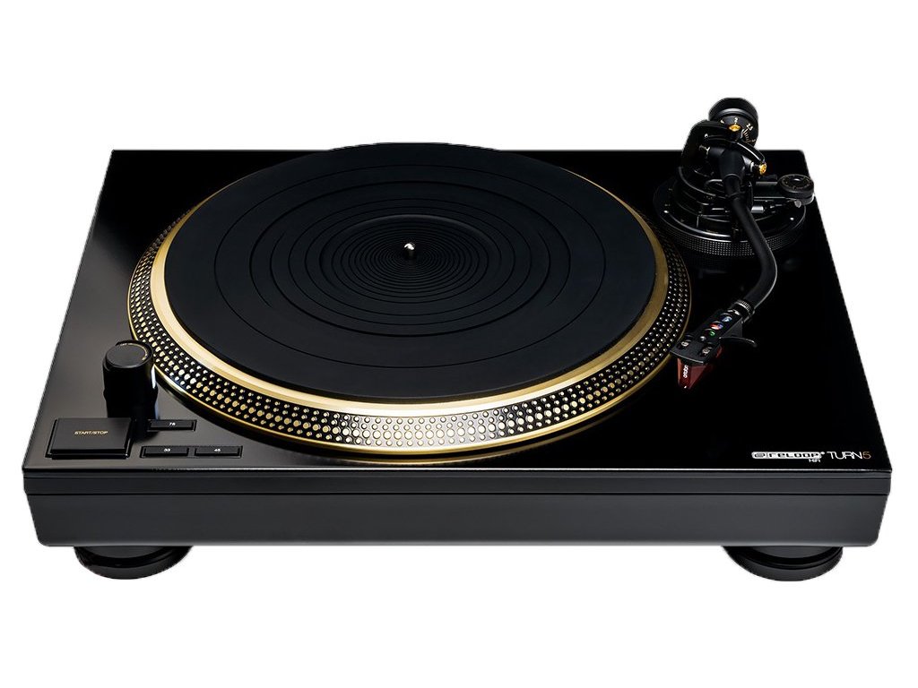Reloop Turn5 to gramofon hi-fi przeznaczony dla wymagających słuchaczy, który oferuje precyzyjną pracę z napędem bezpośrednim, sterowaniem Quartz, ręczną regulacją prędkości lub wyważone ramię S z regulacją VTA i wkładką Ortofon 2M Red.