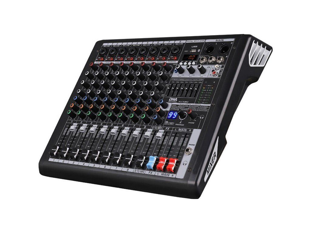 DNA HLC 10 MK2 to bardzo dobry wybór, jeśli interesuje Cię mobilny i stosunkowo tani mikser audio. Umożliwia odtwarzanie plików MP3, obsługuje Bluetooth, dzięki czemu muzykę można odtwarzać również bezpośrednio z telefonu lub innego odtwarzacza, posiada wbudowane multiefekty DSP oraz przełącznik zasilania Phantom +48V, który jest niezbędny do pracy z mikrofonami pojemnościowymi. Jest to bardzo przydatne urządzenie zarówno do domowego nagrywania, jak i do profesjonalnego studia nagraniowego. Doskonale sprawdza się również podczas koncertów muzycznych, występów, prezentacji, a także jako rozszerzenie istniejących instalacji nagłośnieniowych.
