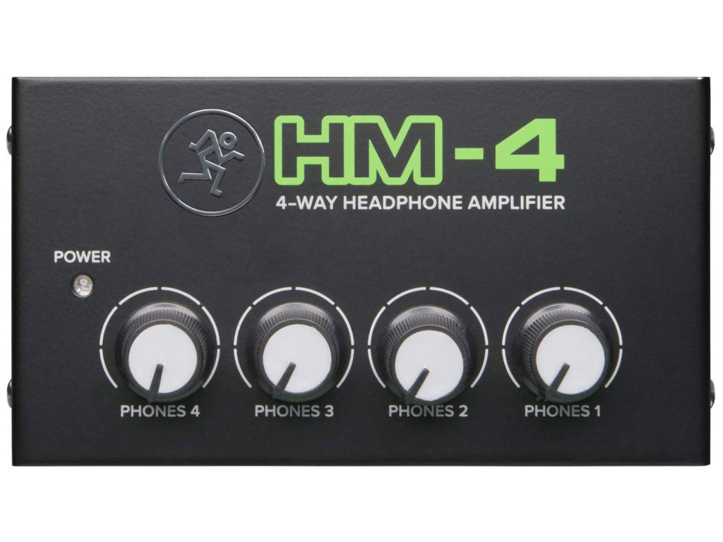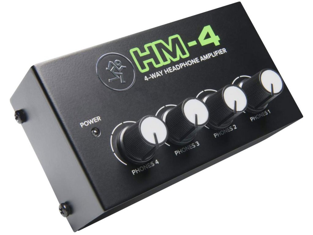 Mackie HM-4 to poręczny wzmacniacz słuchawkowy, który umożliwia rozprowadzenie stereofonicznego podkładu muzycznego do czterech par słuchawek z oddzielną regulacją głośności dla każdego muzyka. Zasilanie odbywa się za pomocą zasilacza 12V AC, który jest częścią zestawu. Podobnie jak więksi bracia z tej serii HM-400 i HM-800, HM-4 jest zbudowany jak czołg.