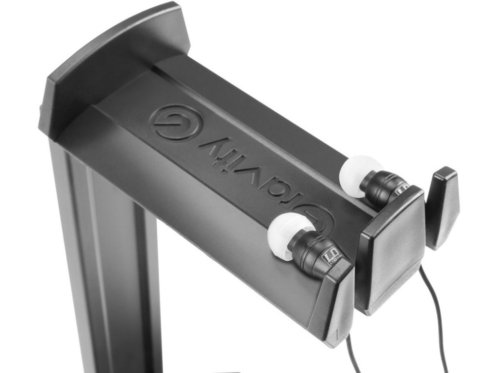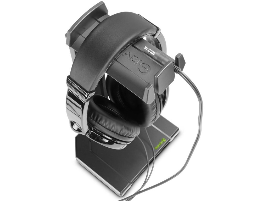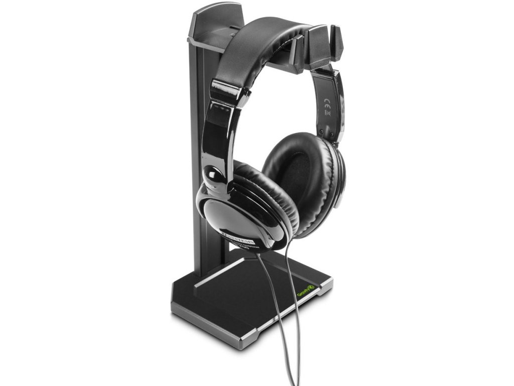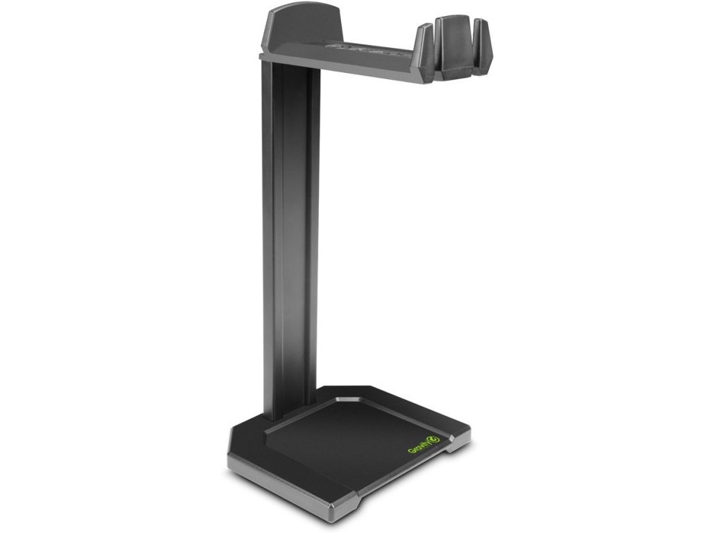 Ten elegancki, biurkowy stojak na słuchawki został zaprojektowany zarówno do użytku domowego, jak i profesjonalnego. Można na nim zawiesić do dwóch dużych słuchawek. Szczeliny w uchwycie umożliwiają wygodne przechowywanie kabli lub słuchawek dousznych. Stojak ma aluminiową podstawkę i wieżową konstrukcję, gdzie uchwyt jest wykonany z tworzywa sztucznego z gumowanym wykończeniem.