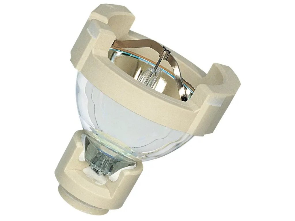 Metalohalogenkowa lampa wyładowcza typu HTI. Trzonek FaXP2.5-2x65, moc 250W, reflector hot start.