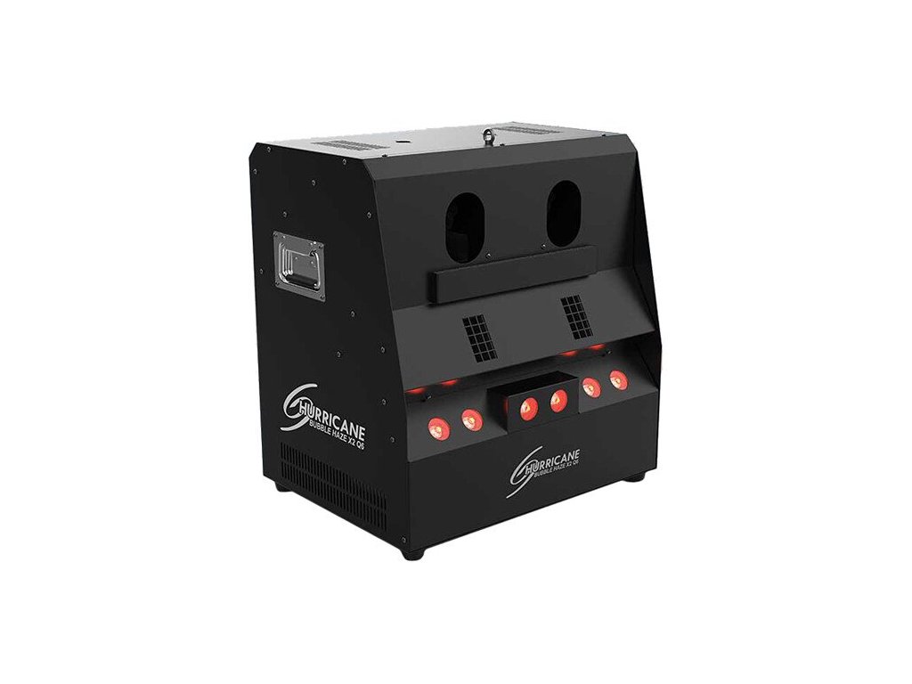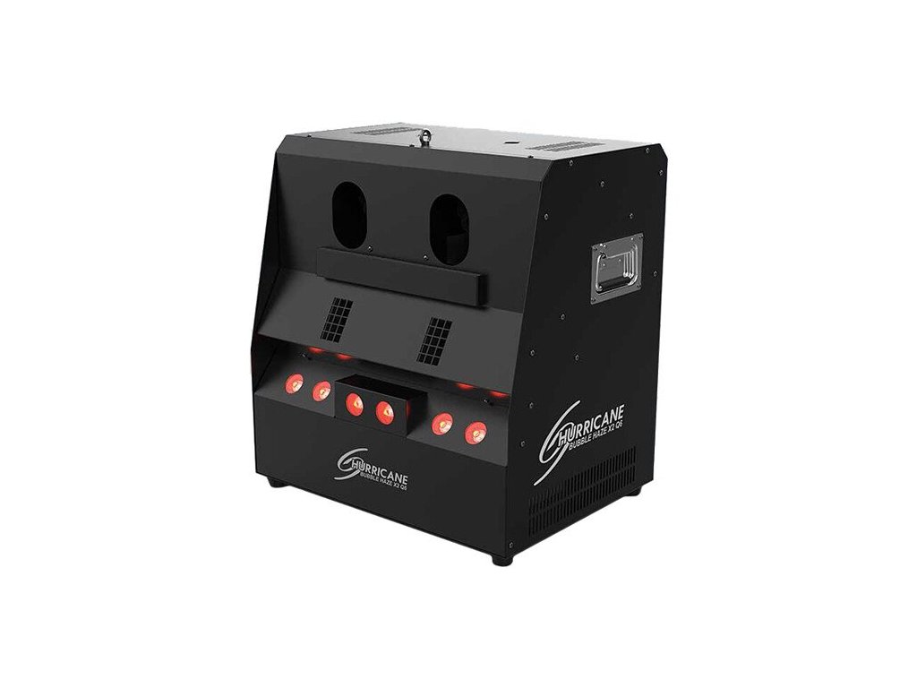 Zaskocz gości swoich wydarzeń dzięki Hurricane Bubble Haze X2 Q6, wielofunkcyjnej maszynie atmosferycznej, która dodaje nowe poziomy wizualnych emocji i zabawy na każdym spotkaniu, prezentacji lub produkcji. Urządzenie jest wyposażone w sześć czterokolorowych (RGB + UV) diod LED, które oświetlają bańki, mgłę lub bańki wypełnione mgłą, które wydobywają się z podwójnych wylotów, podwajając efekt. Dwa wentylatory o zmiennej prędkości wypychają bańki w powietrze, a technologia Always-Ready oznacza, że efekt może działać nieprzerwanie, aby impreza trwała. Hurricane Bubble Haze X2 Q6 ma zbiornik na bańki z napełnianiem grawitacyjnym, który recyrkuluje niewykorzystany płyn do baniek i zmniejsza zużycie płynu. Wbudowana funkcja czyszczenia wydłuża żywotność maszyny i zmniejsza zatykanie.