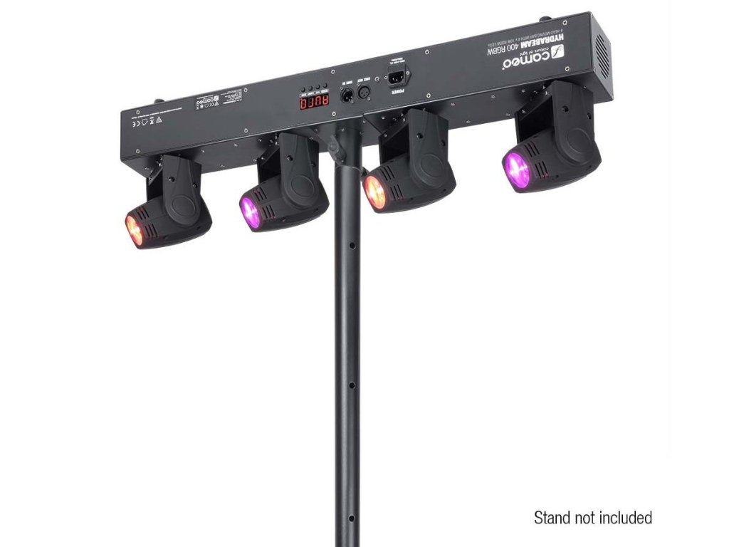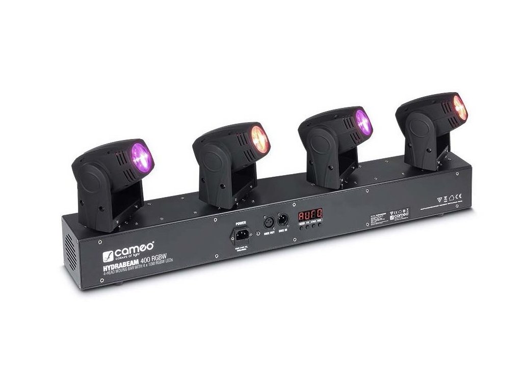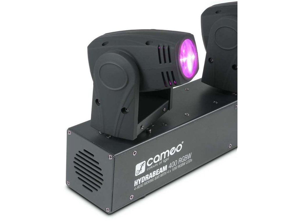 Cameo HydraBeam 400 RGBW to system oświetleniowy z 4 ultraszybkimi ruchomymi głowicami, którymi można sterować niezależnie. Są wyposażone w 10W Quad LED o wysokiej intensywności od wiodącego producenta Cree, który zapewnia wąski kąt wiązki 4,5 °. Ruchome głowice obracają się do 540° w poziomie i do 270° w pionie i są chłodzone wentylatorem o bardzo niskim poziomie hałasu.