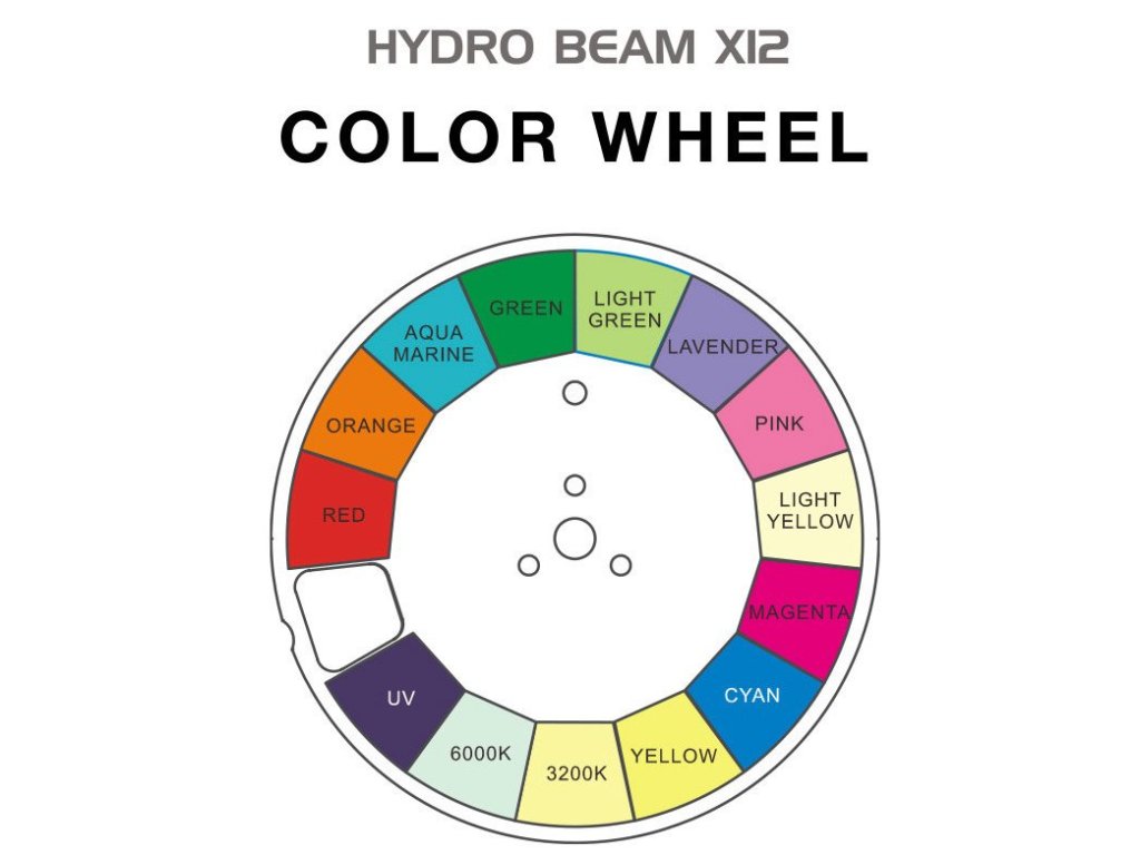 Starannie dobrany wybór narzędzi do kształtowania wiązki Hydro Beam X12 zapewnia funkcje, których potrzebują projektanci oświetlenia, a jednocześnie pozwala zachować kompaktowość i zwinność oprawy. Zawiera 14 kolorów + biały, w tym UV, CTO (3200K) i CTB (6000K), z obsługą dzielonych kolorów i dwukierunkowego przewijania. Statyczne koło GOBO zawiera 16 wzorów (plus otwarte) zoptymalizowanych pod kątem efektów, w tym cztery wiązki, i oferuje efekt potrząsania GOBO oraz dwukierunkowe efekty przewijania GOBO. Urządzenie zawiera również zmotoryzowany focus, filtr Frost do tworzenia efektu wash oraz dwa obrotowe pryzmaty (6-fasetowy liniowy i 24-fasetowy okrągły).