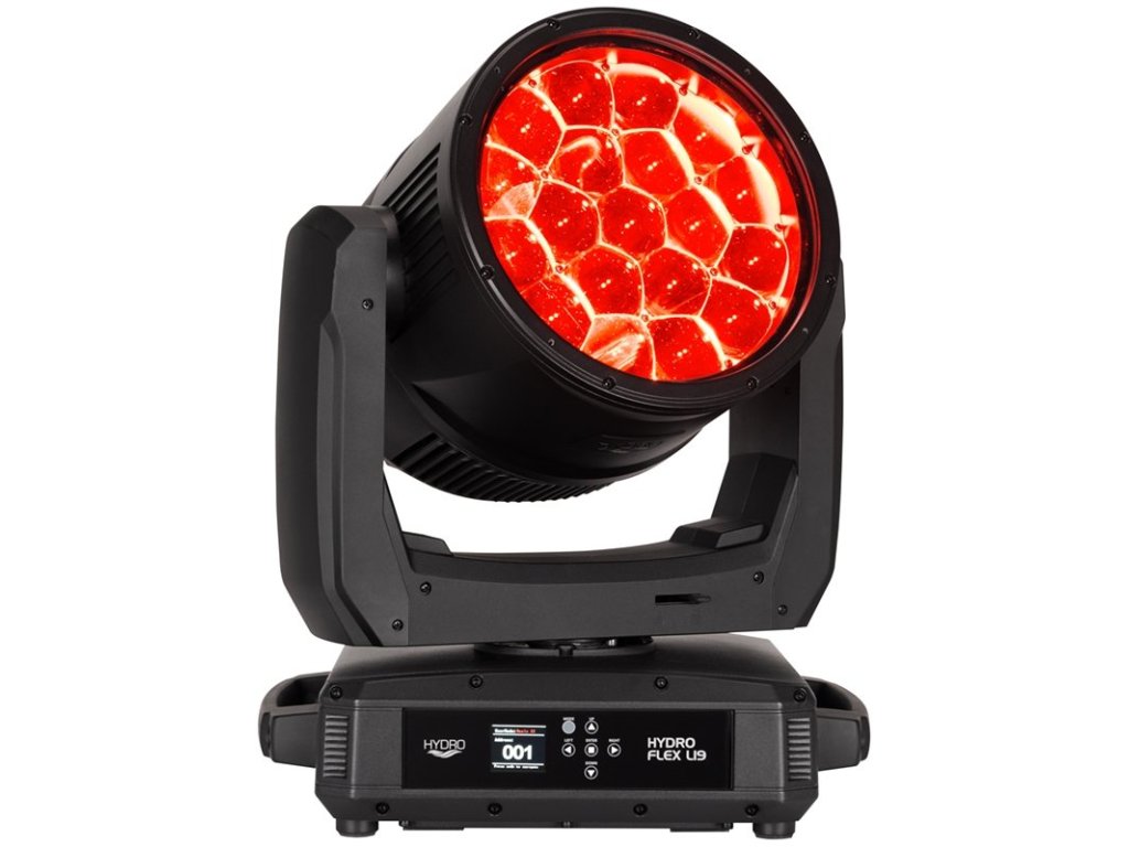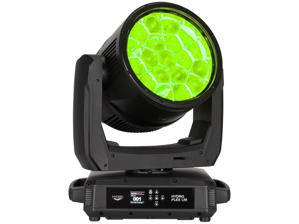 Solidna konstrukcja z klasą IP65 nadaje się do użytku wewnątrz i na zewnątrz. Metalowa obudowa zapewnia niezawodną ochronę przed kurzem, piaskiem, wilgocią i cieczami, co czyni ją idealnym wyborem na festiwale i do klubów na świeżym powietrzu. Zintegrowany bezprzewodowy system sterowania Aria X2 obsługuje DMX512, ArtNet, sACN i KlingNet. Hydro Flex L19 posiada wejścia/wyjścia DMX z 5-pinowym złączem IP65 oraz porty sieciowe RJ45 z gumowymi osłonami dla zapewnienia stałej wydajności.