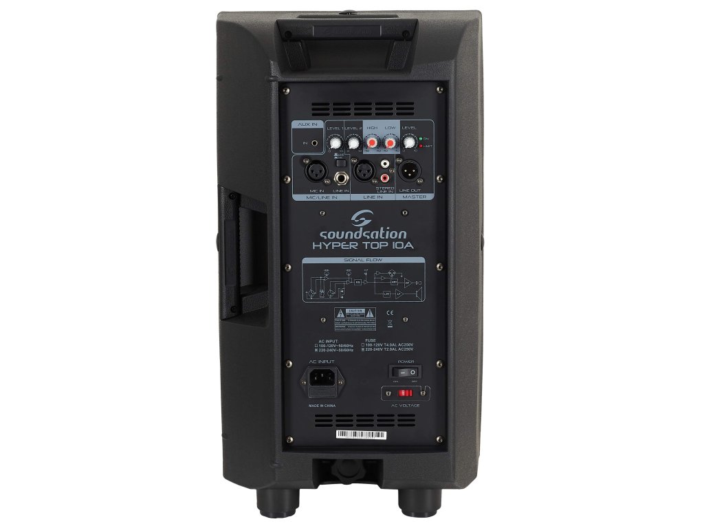 Dwupasmowy aktywny głośnik Hyper Top marki Soundsation to wynik wieloletniego doświadczenia, które firma zdobyła w systemach Portable Sound. Głośnik jest wykonany z wytrzymałego i lekkiego materiału polipropylenowego uzupełnionego metalowym grillem. Wewnętrzna część plastikowej obudowy wypełniona jest pianką izolacyjną dla jak najlepszej produkcji dźwięku. Hyper Top 10A nadaje się do nagłaśniania przestrzeni wewnętrznych i zewnętrznych, przedstawień teatralnych, kameralnych i akustycznych koncertów.