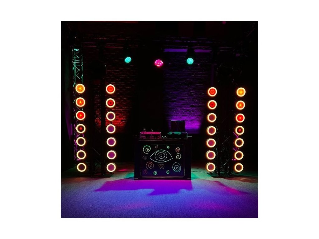 Light4Me Hypno PAR może całkowicie zmienić oświetlenie sceniczne na scenie. Reflektor jest wyposażony w 66 diod LED RGB, które tworzą 4 okręgi świetlne. Pierścieniowe części mogą działać oddzielnie lub łączyć się ze sobą, co pozwala na tworzenie bardzo różnorodnych efektów i kombinacji kolorystycznych na bazie makr. Reflektor umożliwia również tworzenie kolorowych blasków, różnych temperatur barwy białej i różnorodnych efektów stroboskopowych.