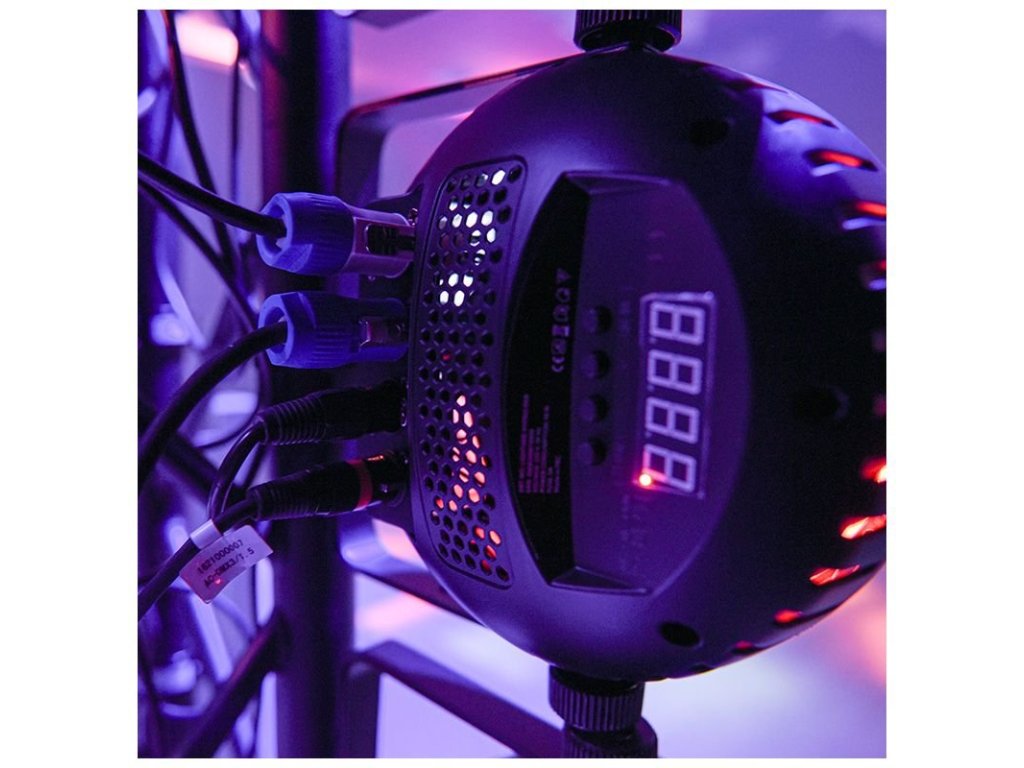 - Tryby pracy: Auto, DMX, Master/Slave, Sound