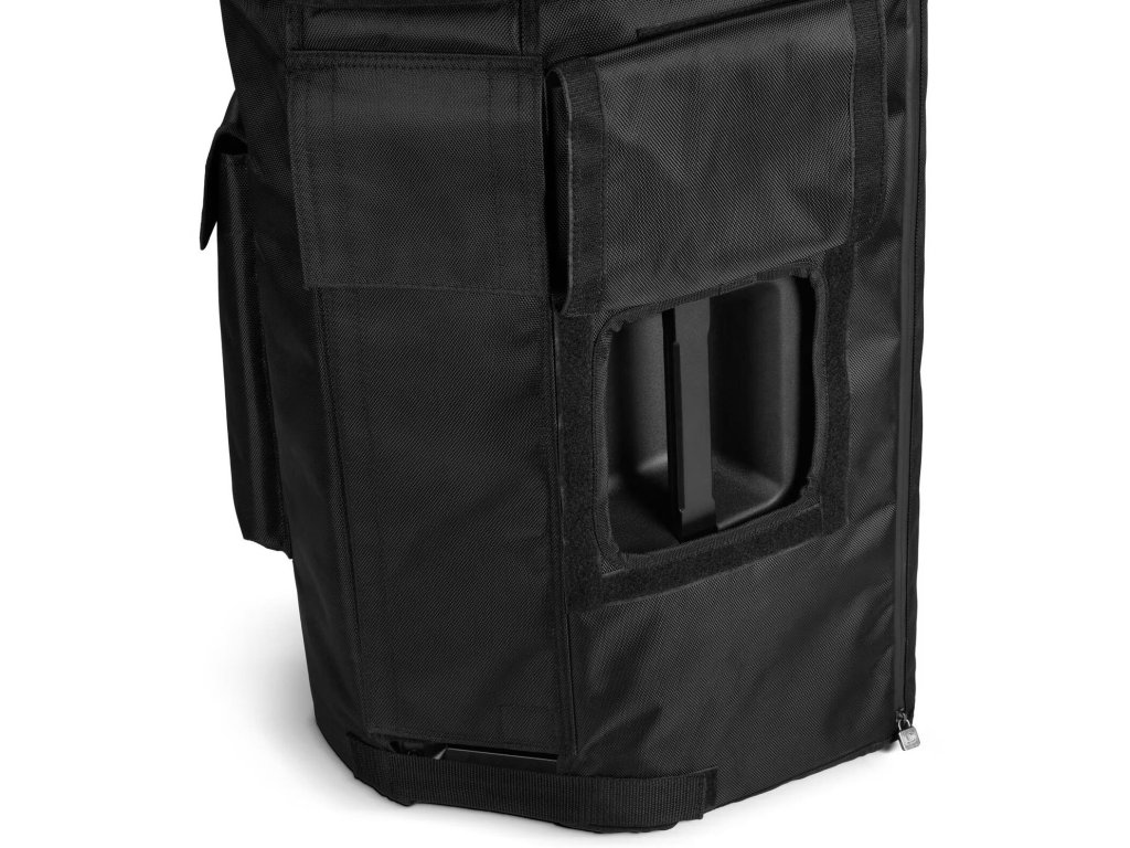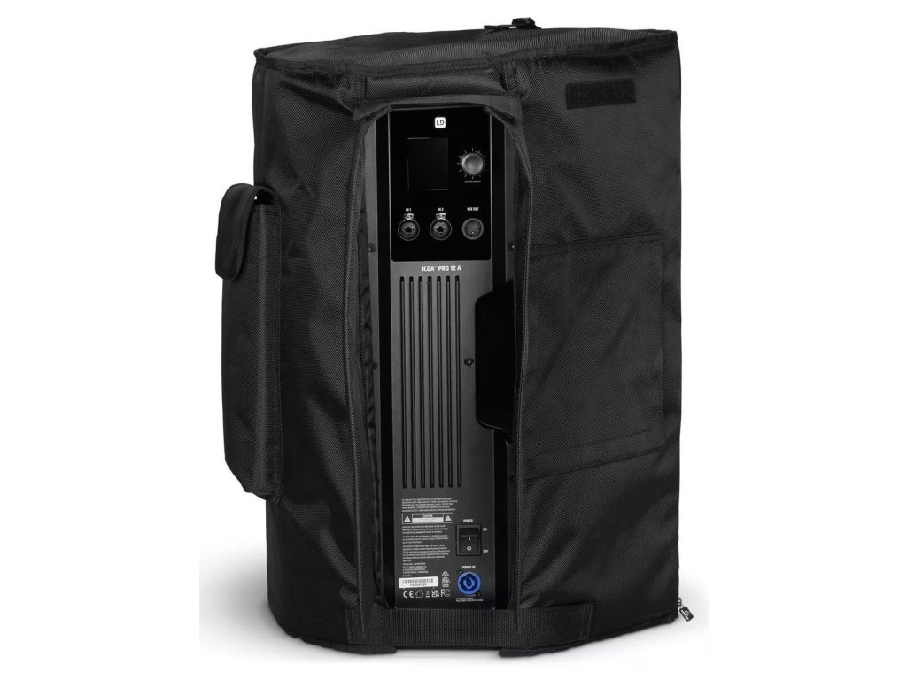 Liczne otwory na zamki błyskawiczne i rzepy oraz duża rolowana część przednia umożliwiają pełne korzystanie z głośnika ICOA z założonym pokrowcem ochronnym. Zewnętrzna kieszeń z boku pokrowca ochronnego oferuje wystarczająco dużo miejsca do przechowywania akcesoriów, takich jak kable zasilające i kable XLR.