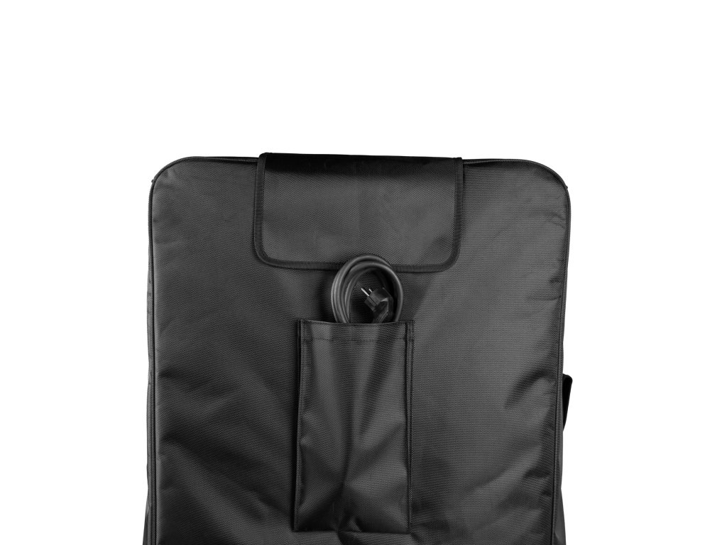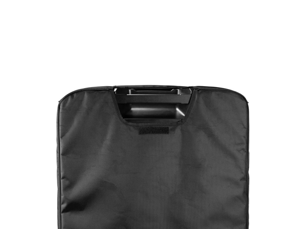 Dla jeszcze większej praktyczności po bokach pokrowca zintegrowano wzmocnione uchwyty z klapką na rzep. Uchwyty te umożliwiają wygodną obsługę i przenoszenie subwoofera, nawet gdy pokrowiec jest założony.